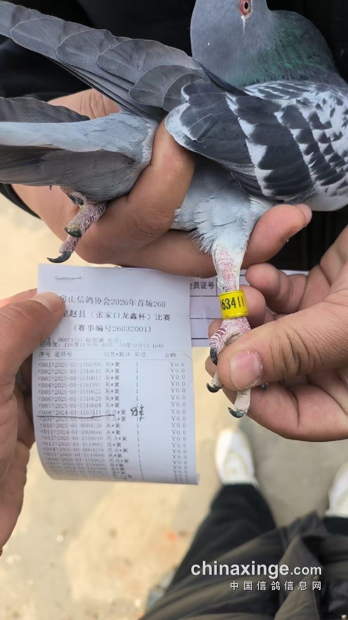 房山区信鸽协会2026年春季首场260公里赵县(龙鑫杯)集鸽羽数
