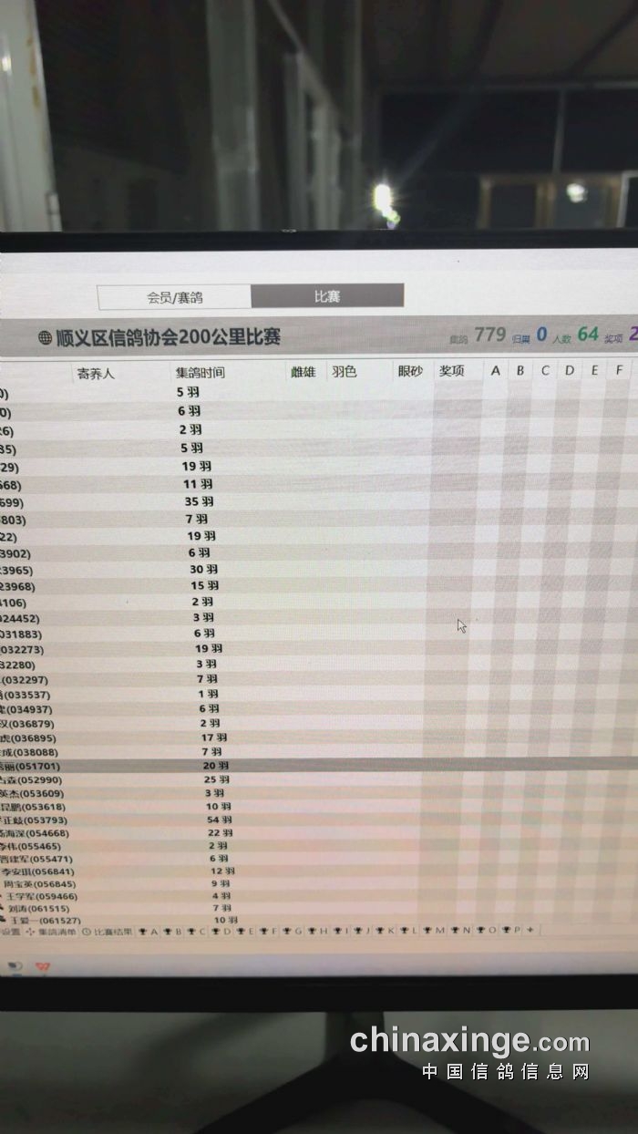顺义区信鸽协会200公里比赛共计集鸽779羽,取奖145名,预祝会员取得好成绩!