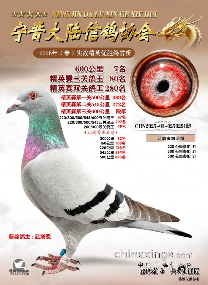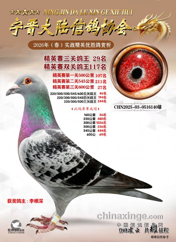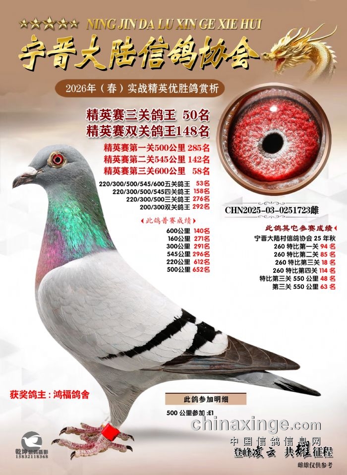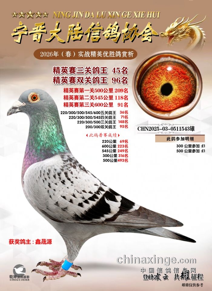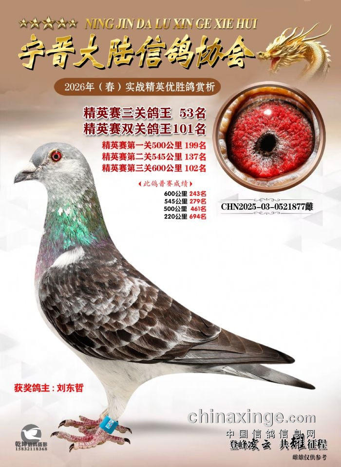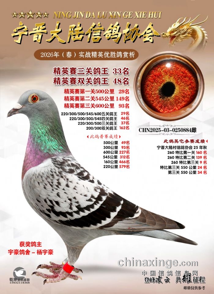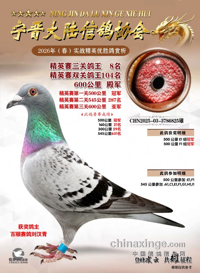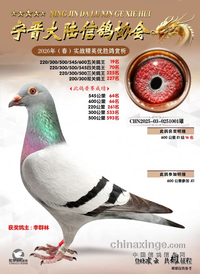 26年春精英赛五关鸽王600公里获奖鸽赏析