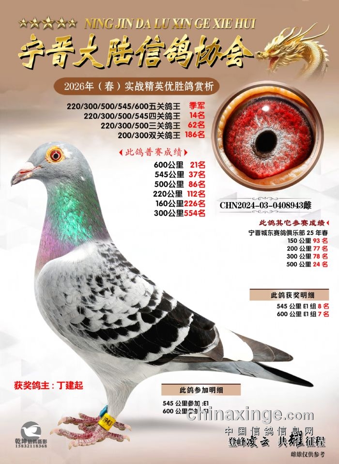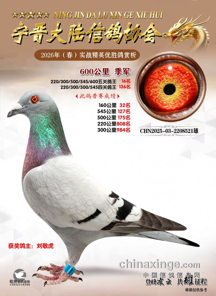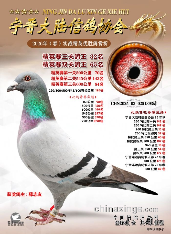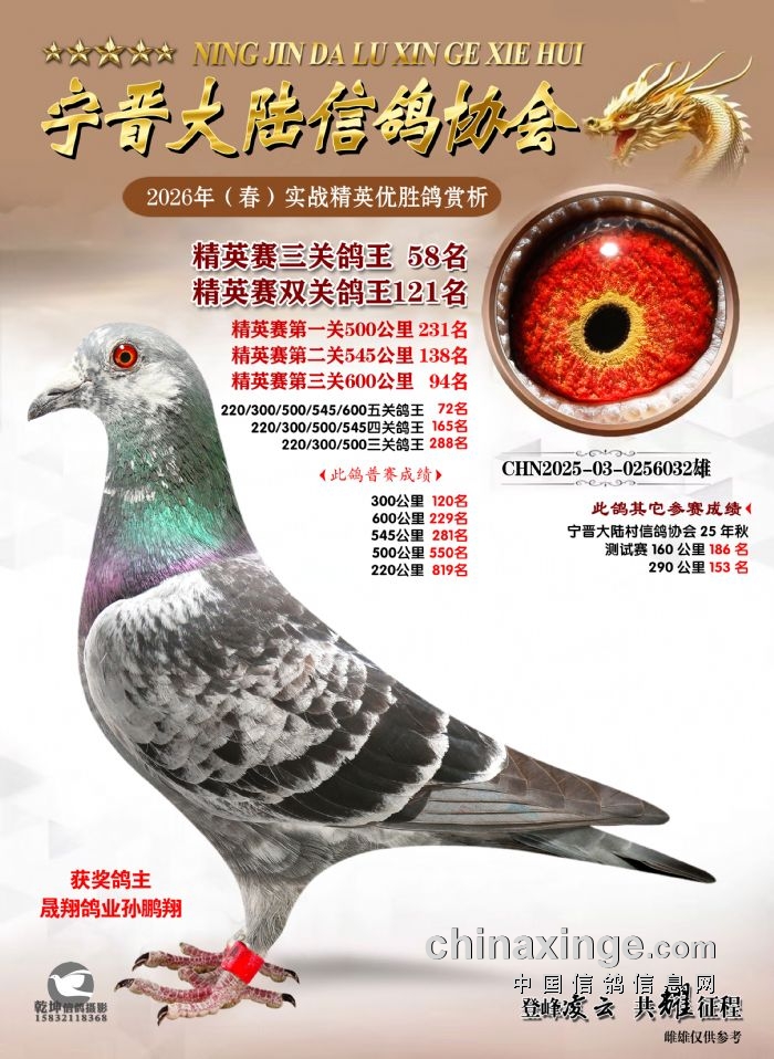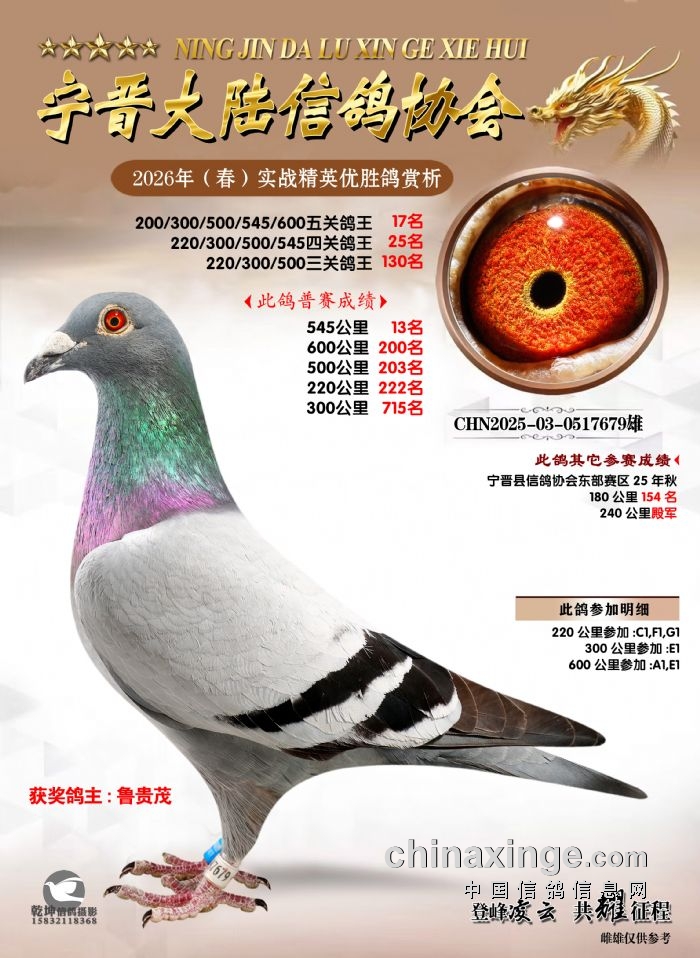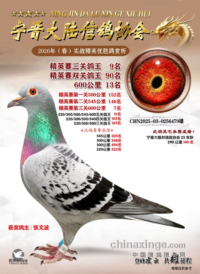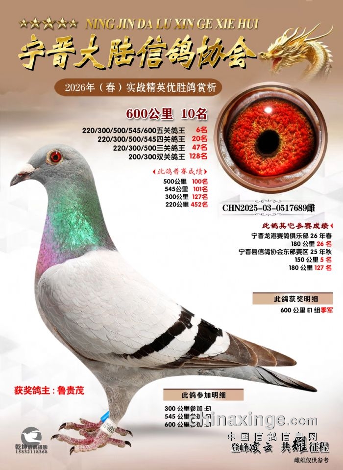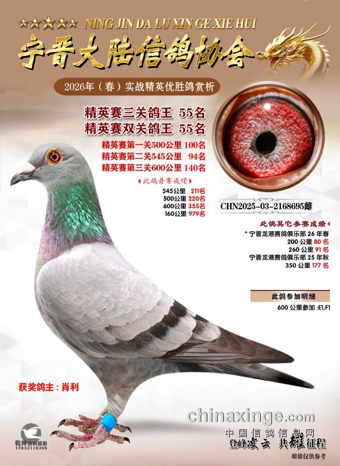 26年春精英赛五关鸽王600公里获奖鸽赏析