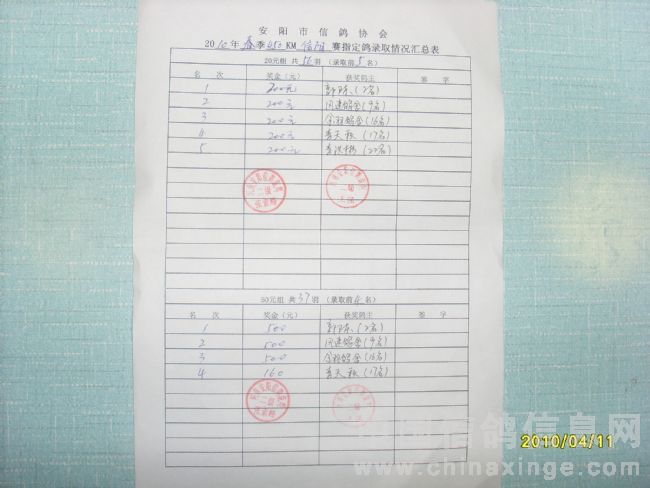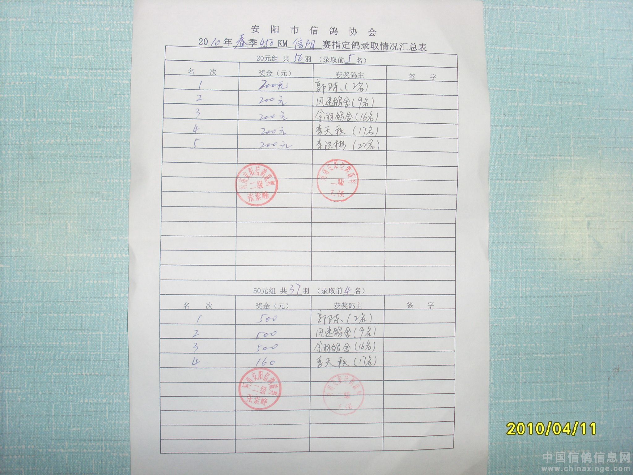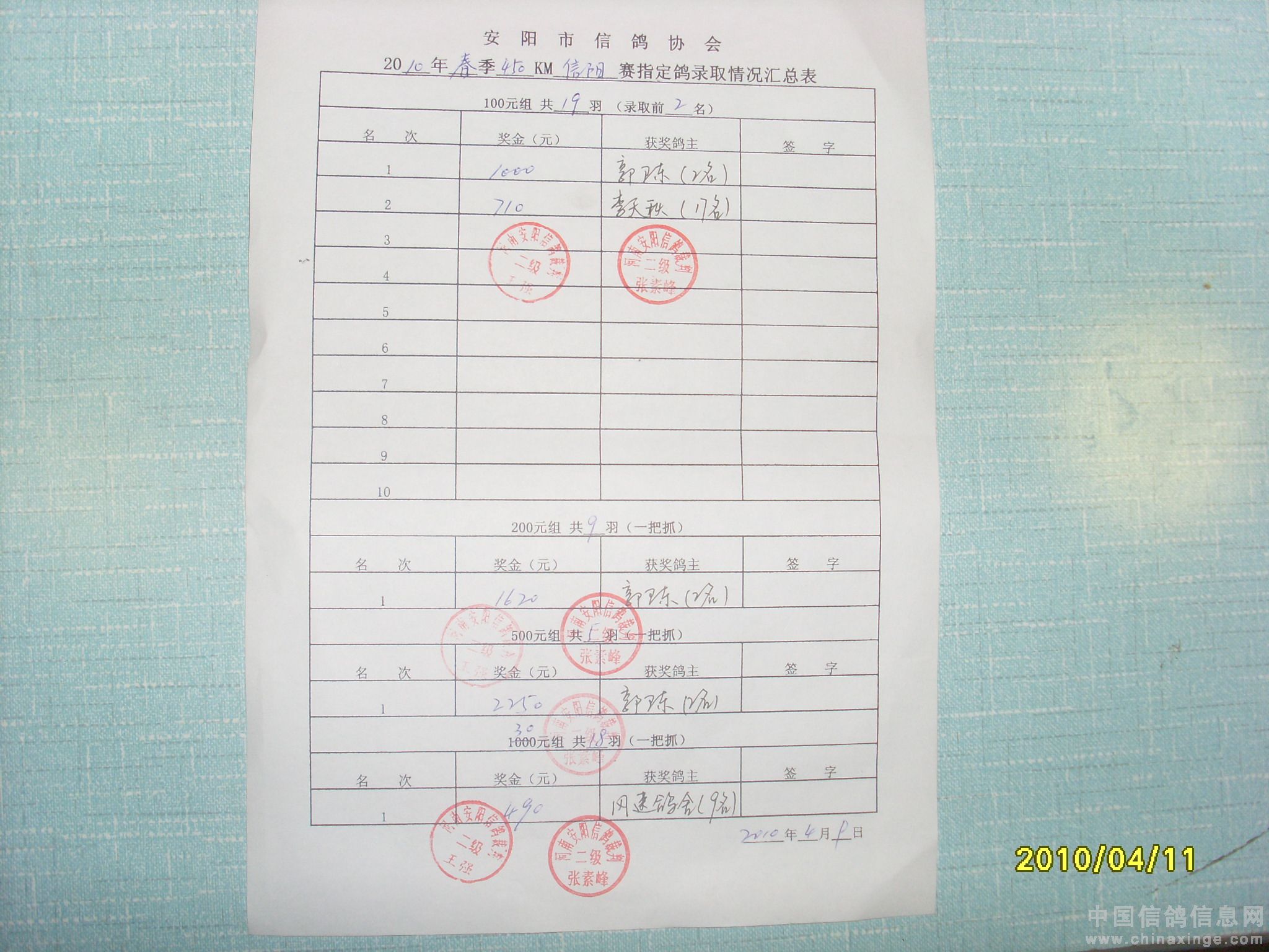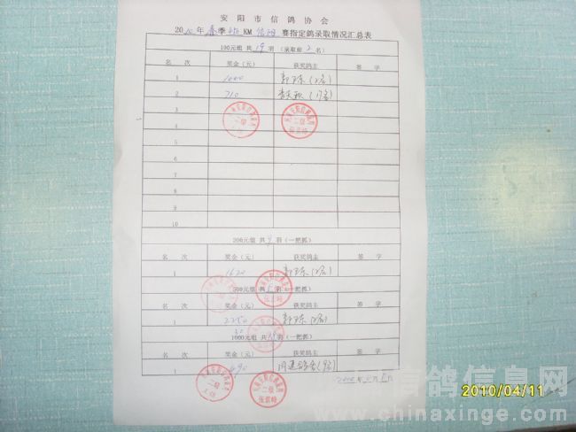2021秋安阳市信鸽协会500公里大悟站指定获奖明细(临时)
