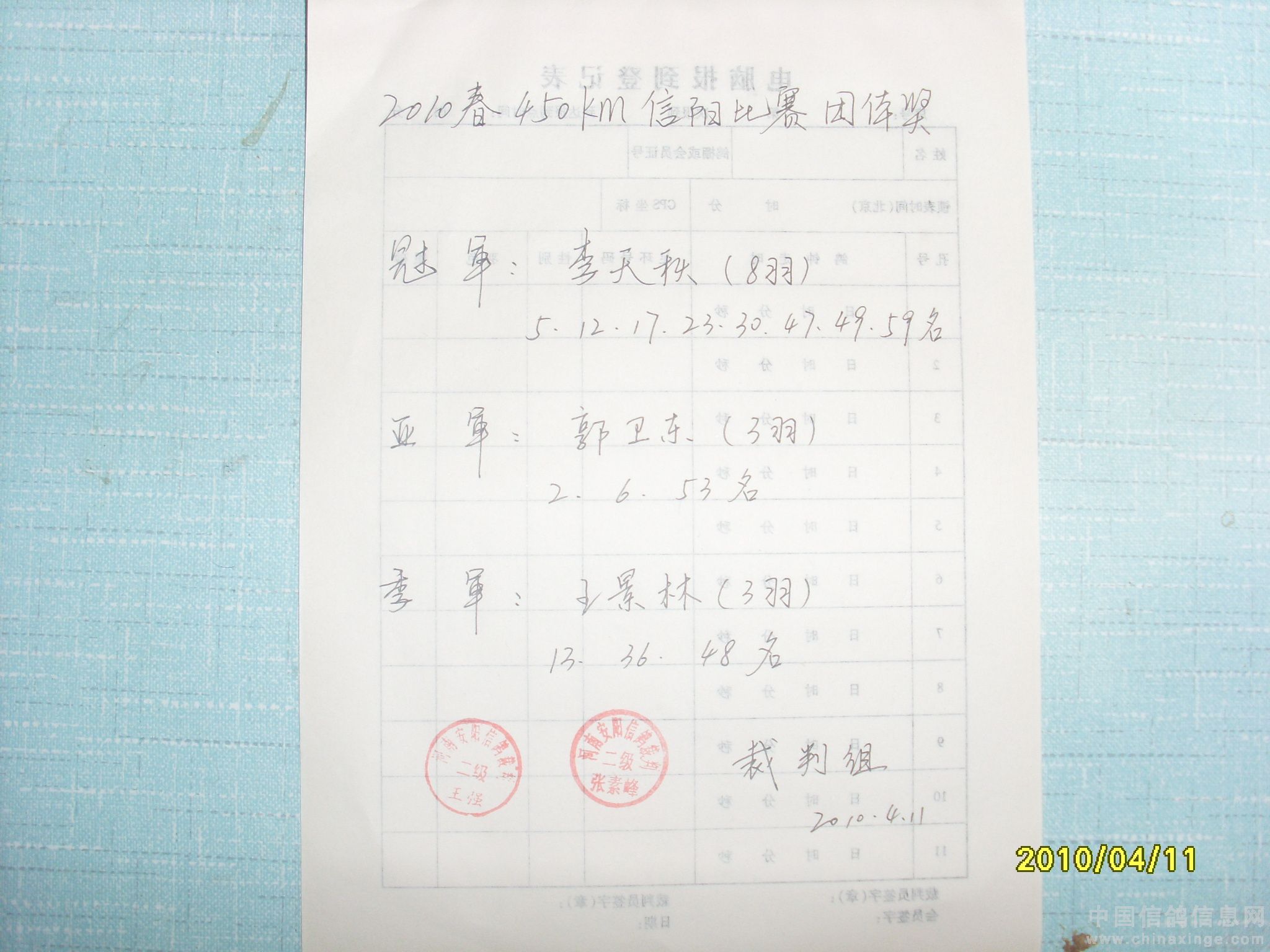500公里大悟站前十名验鸽(汽车大奖赛冠军)(7-8)