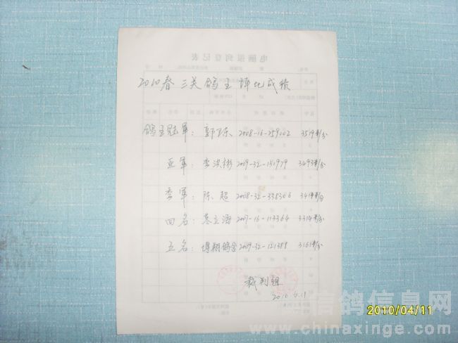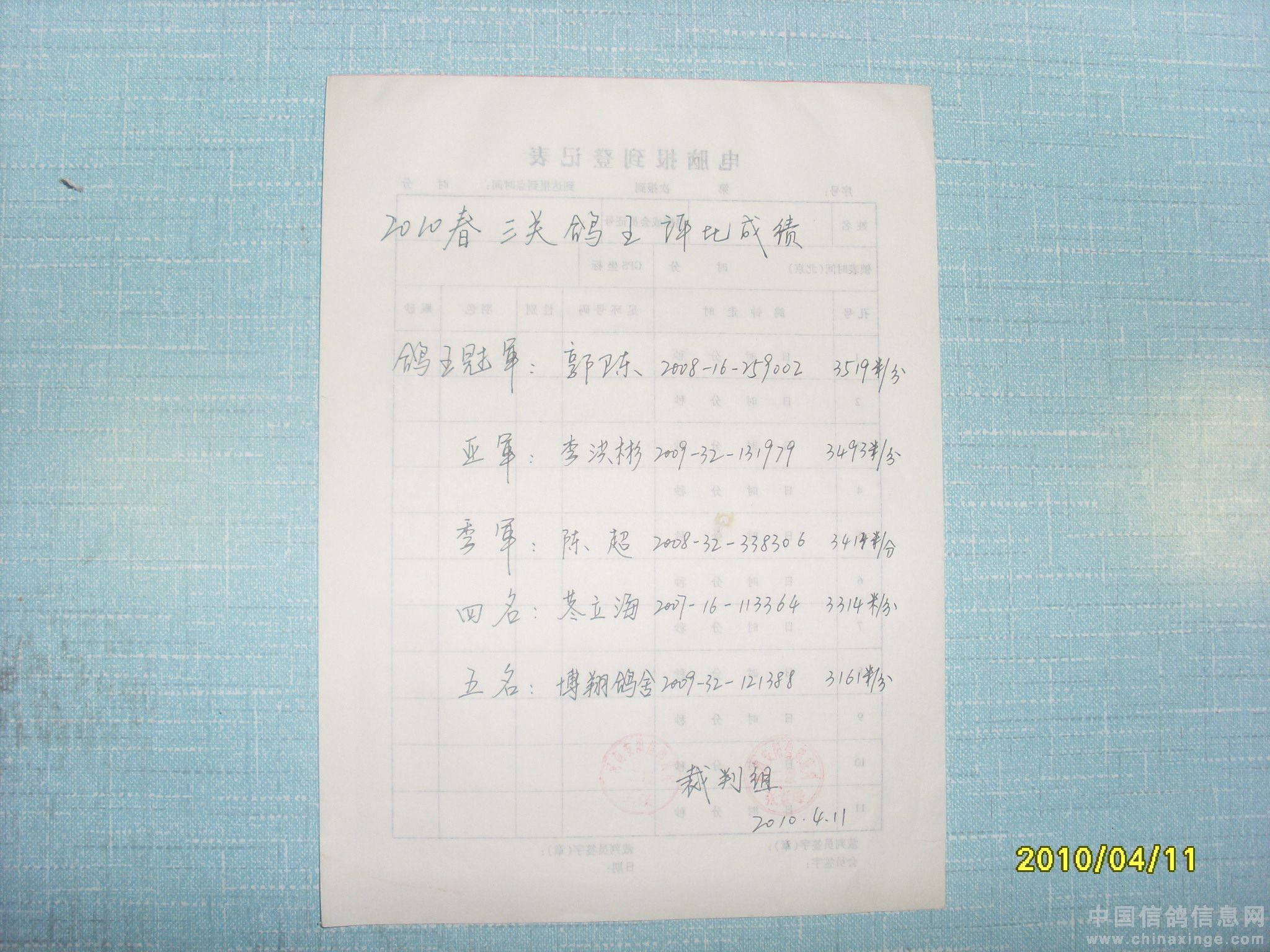 500公里大悟站前十名验鸽(汽车大奖赛冠军)(7-8)