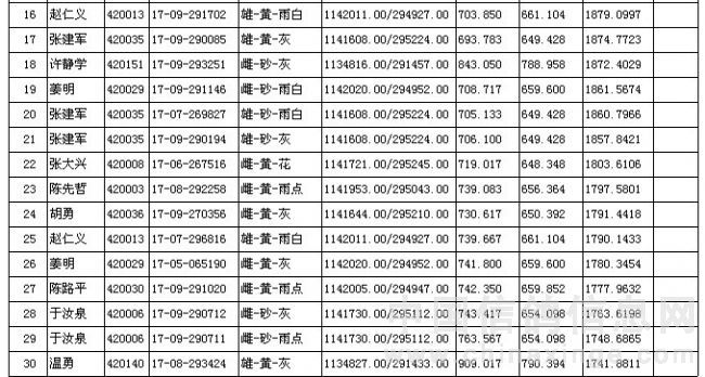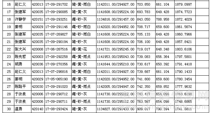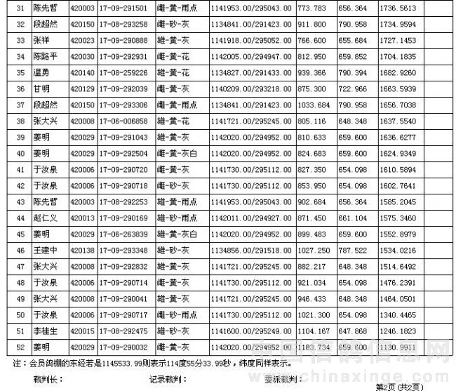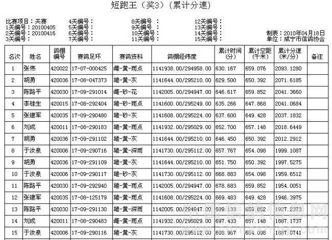 咸宁市信鸽协会2021年(秋) 五关赛综合成绩报告表