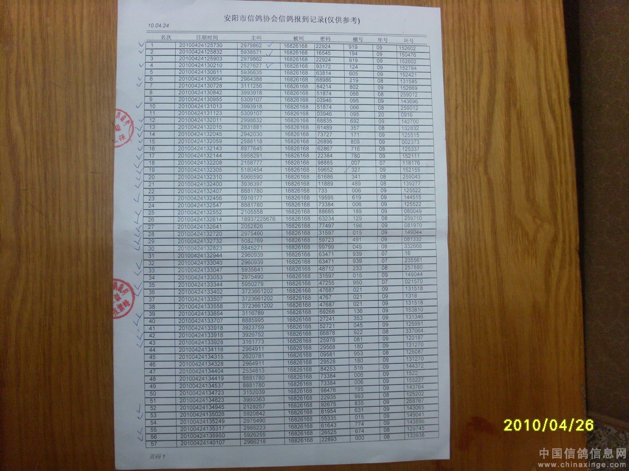 500公里大悟站前十名验鸽(5-6)