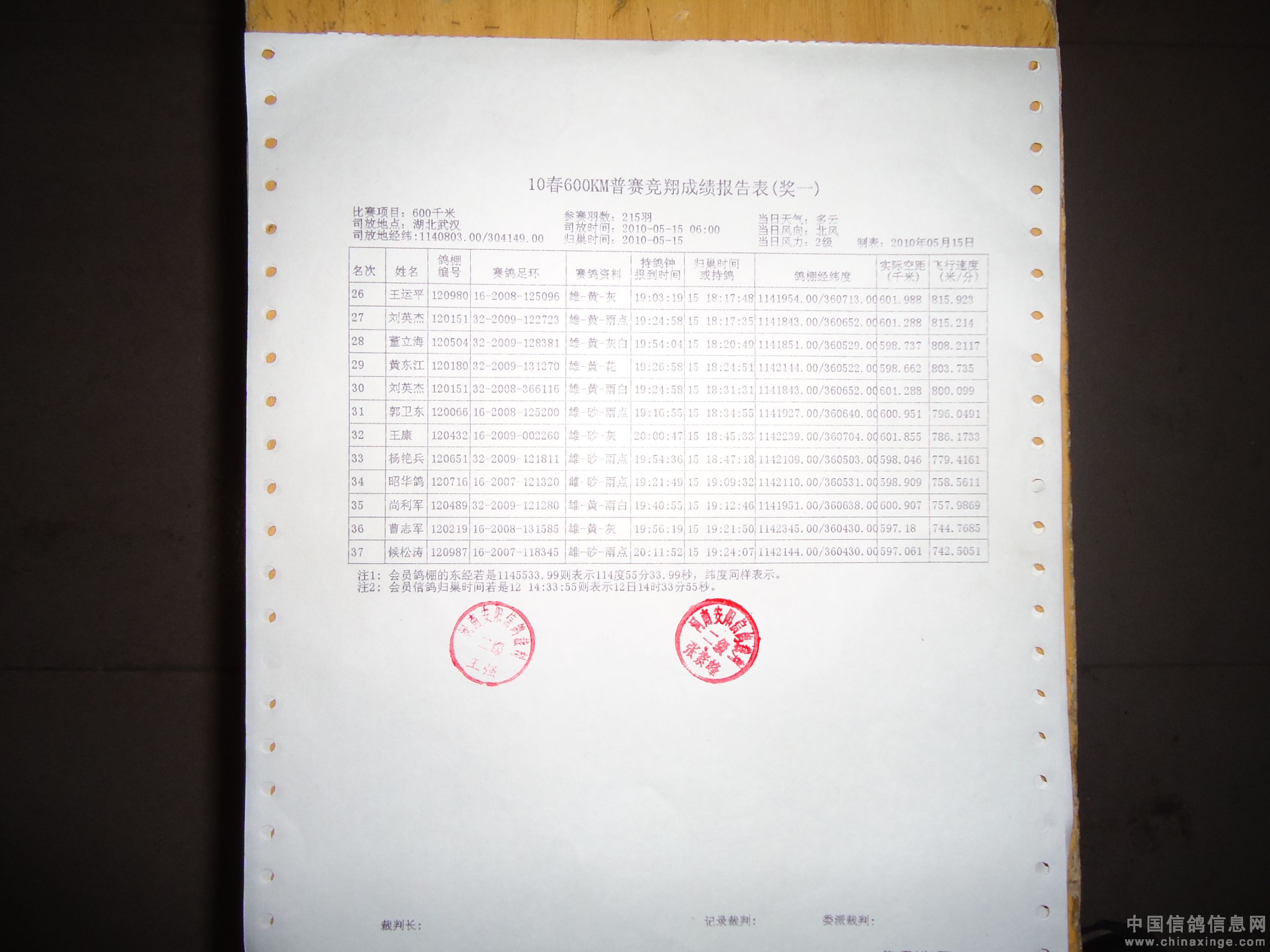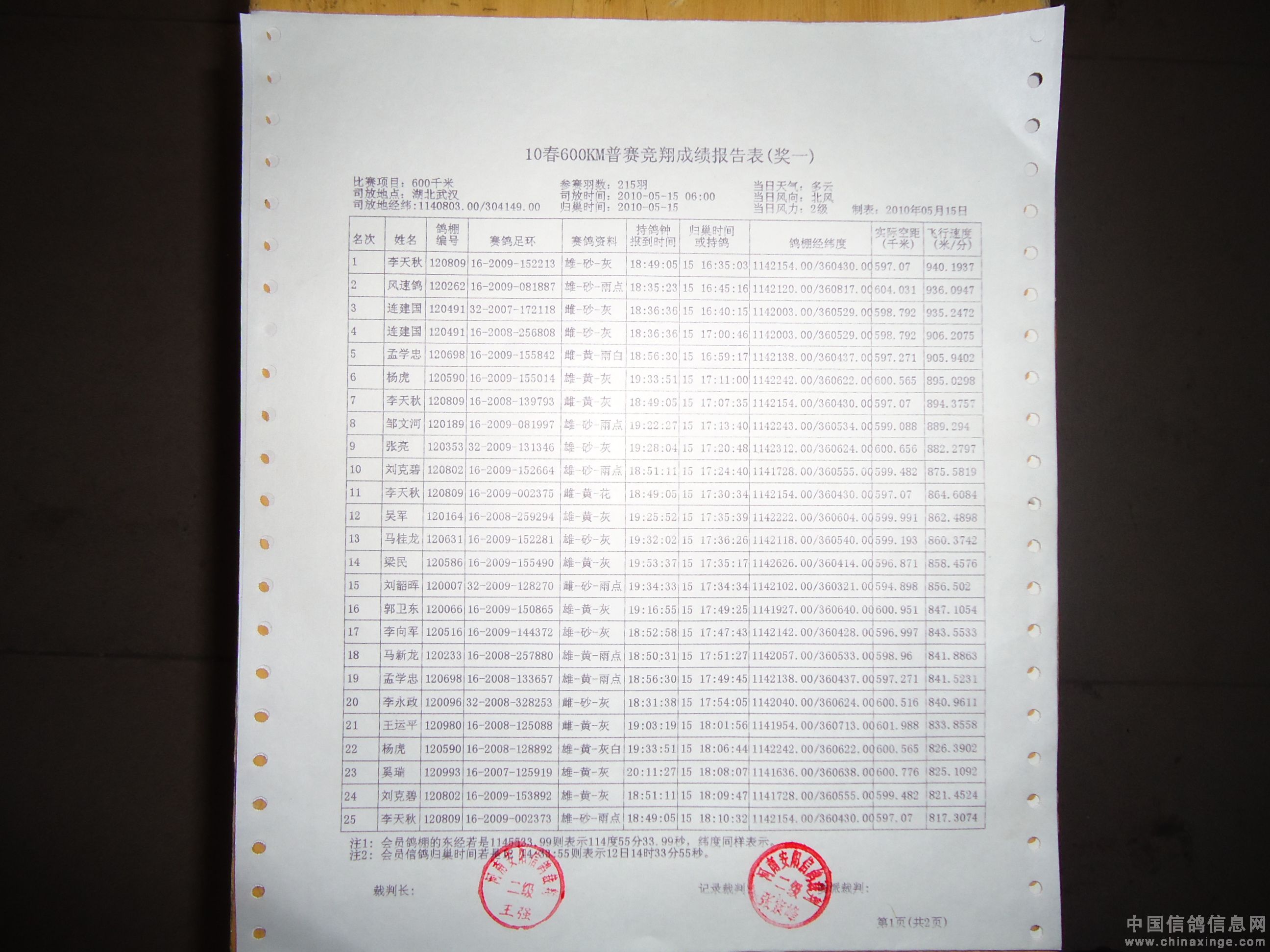500公里大悟站前十名验鸽(汽车大奖赛冠军)(7-8)