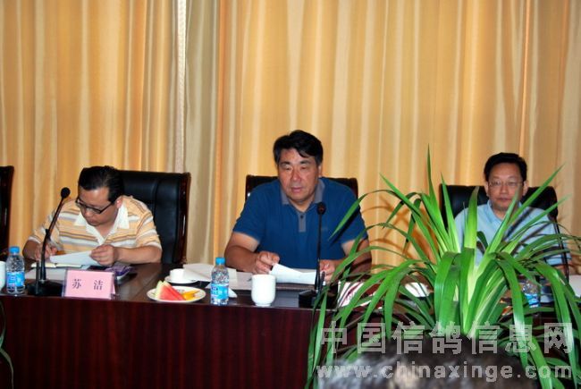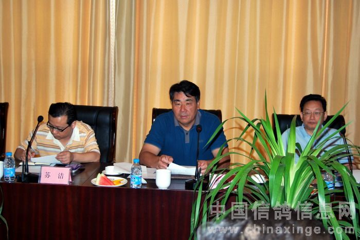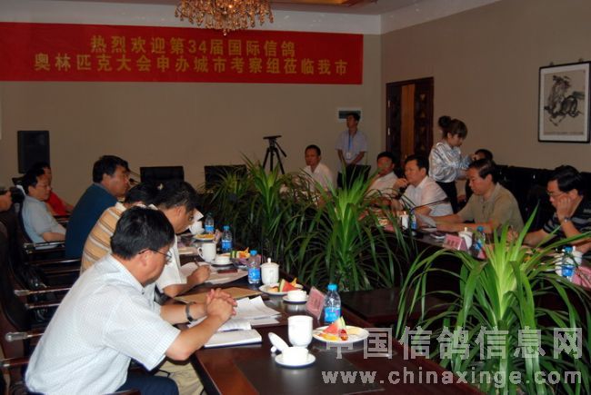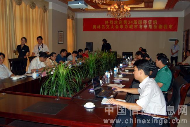 然后,在天津泽酩集团会议室,考察组听取了津南区副区长刘恒志做的天津申办报告,天津申办2015年第34届国际信鸽奥林匹克大会的主题是“共享一片蓝天,笑迎五洲宾客”,秉承“腾飞、融合、和平、进步”的理念,坚信把此次大会办成一届高水平的国际信鸽盛会。