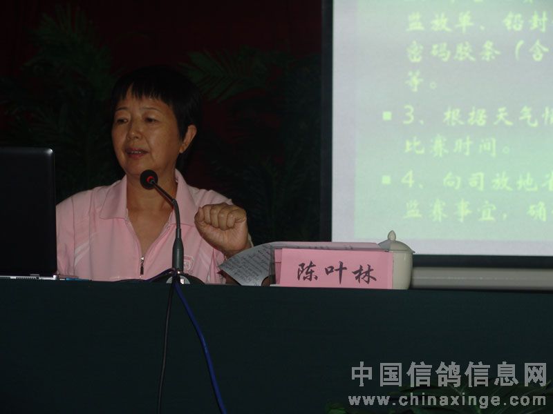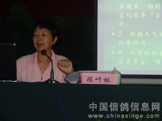 安徽省信鸽协会秘书长陈叶林同志为学员讲解公棚执裁程序。