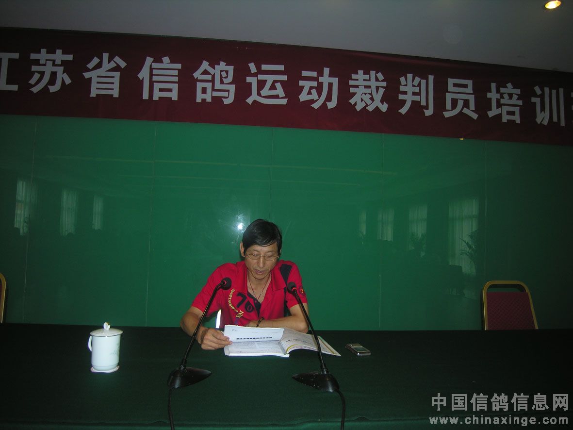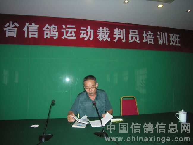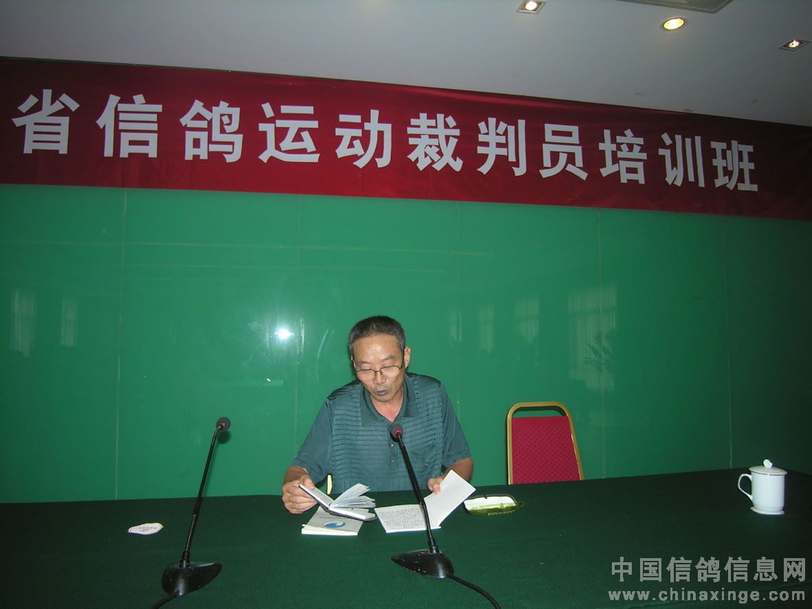 徐荣生会长在培训开始前做了讲话。他说,信鸽裁判员培训班是省鸽协2010年的重要工作之一,这次培训班得到省体育局和各省辖市体育局的大力支持,省体育局专门下发文件布置这项工作,这充分表明上级主管部门对信鸽裁判员队伍建设的重视。提高裁判员执裁水平是发展信鸽运动的基础,也是广大会员的要求,今年的培训班是十多年来规模最大的一次,形势很喜人。但培训和晋升裁判等级只是一个手段,提高队伍素质和执裁水平才是根本所在。他希望参加培训班的裁判员经过认真学习和交流,进一步熟悉竞赛规则和相关规定,严格依法执裁,并预祝大家在考试中取得好成绩。