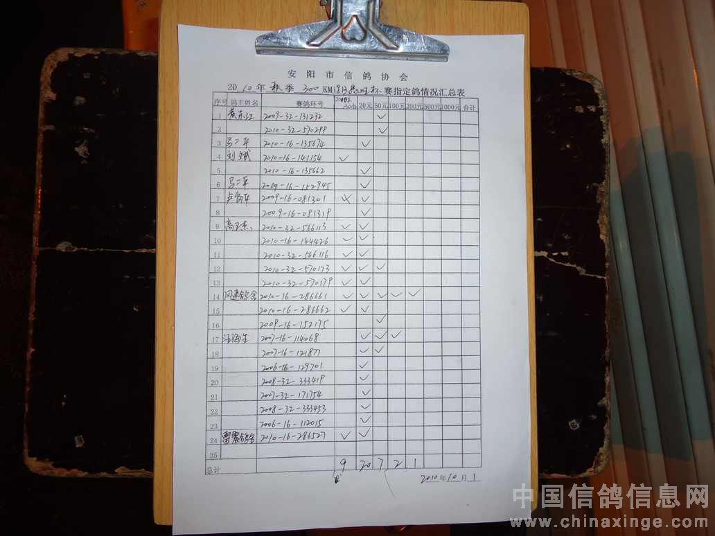 2021秋安阳市信鸽协会500公里大悟站成绩明细(临时)1-100
