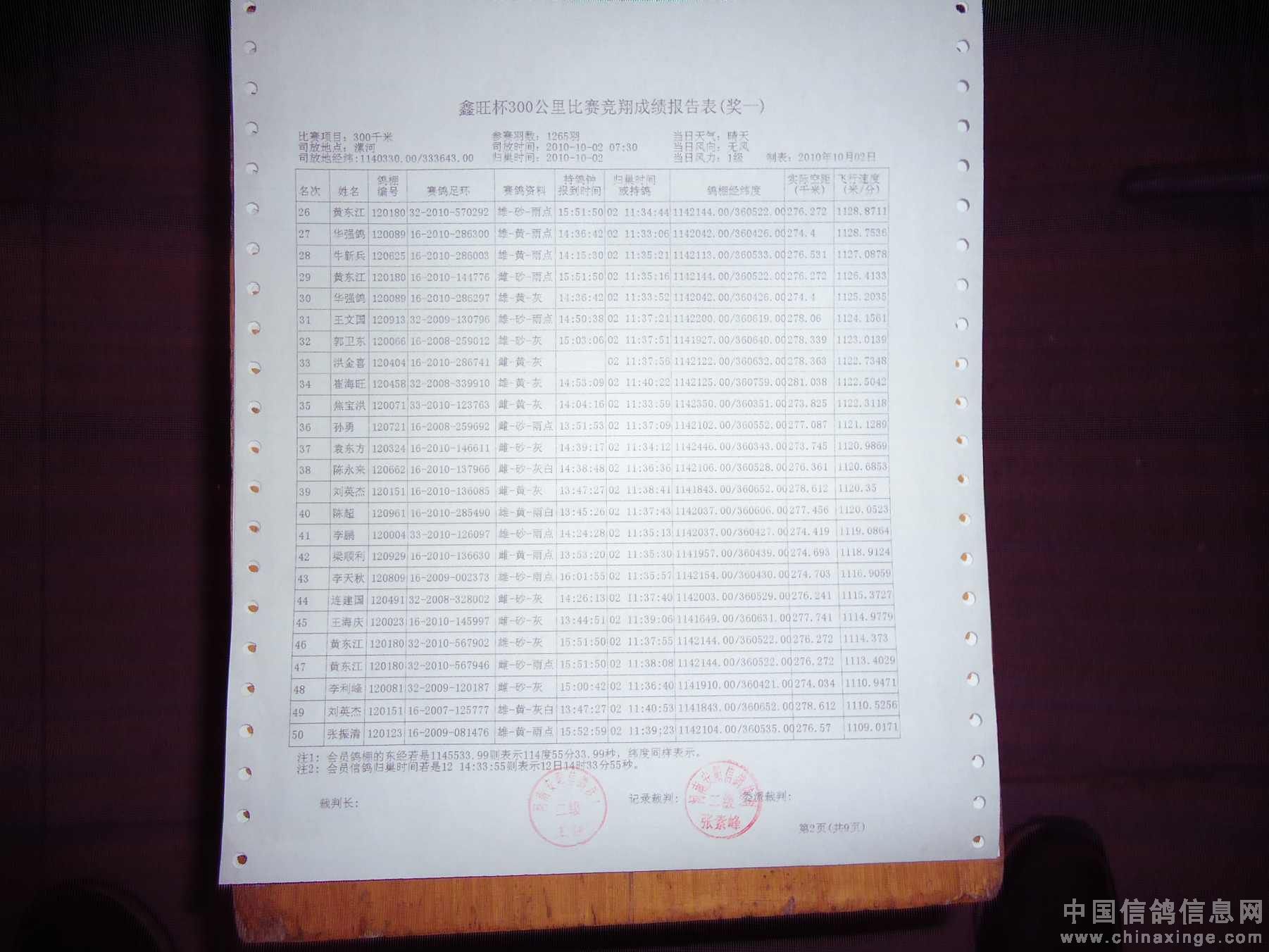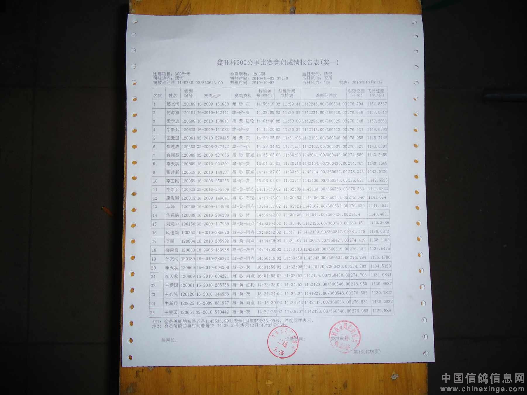 500公里大悟站前十名验鸽(汽车大奖赛冠军)(7-8)