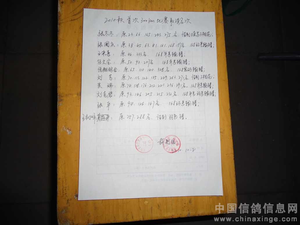 500公里大悟站前十名验鸽(3-4)