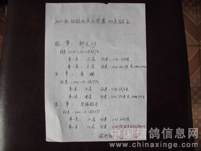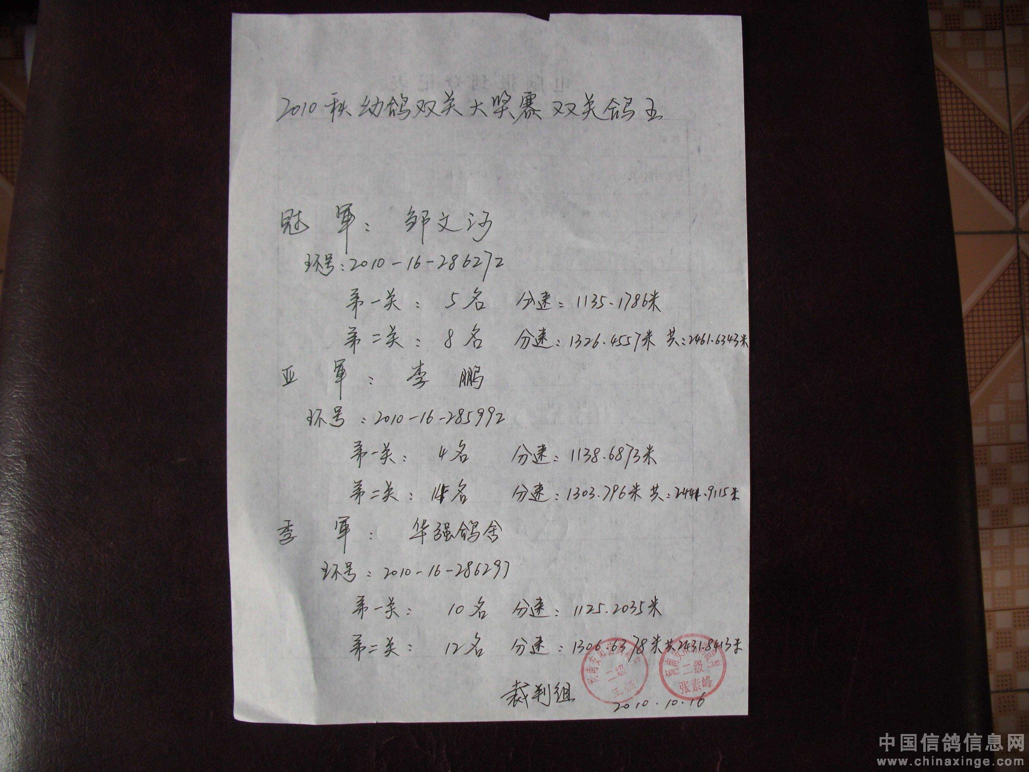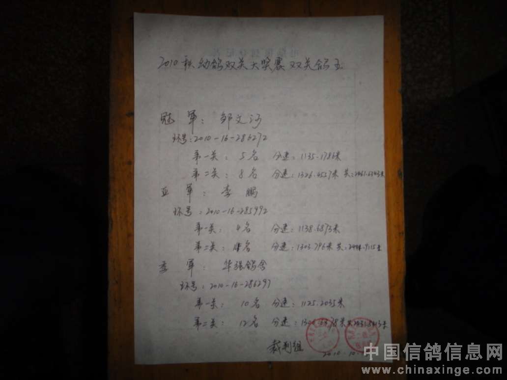 500公里大悟站前十名验鸽(汽车大奖赛冠军)(7-8)