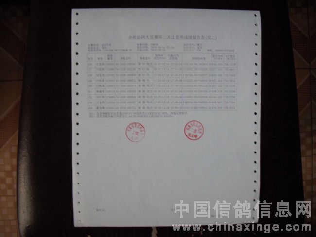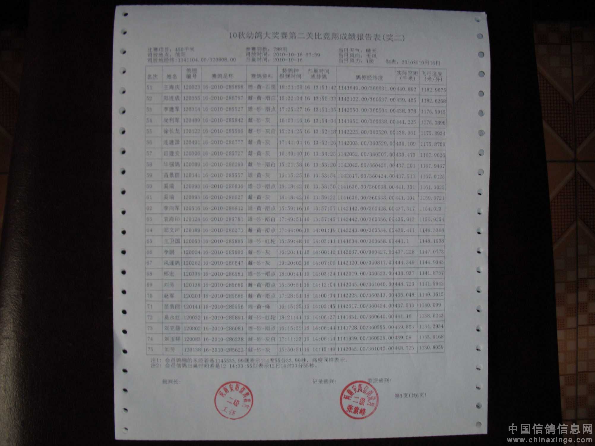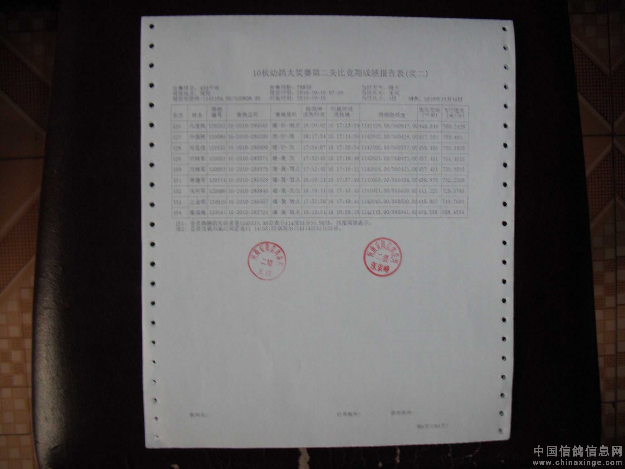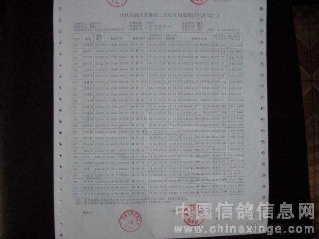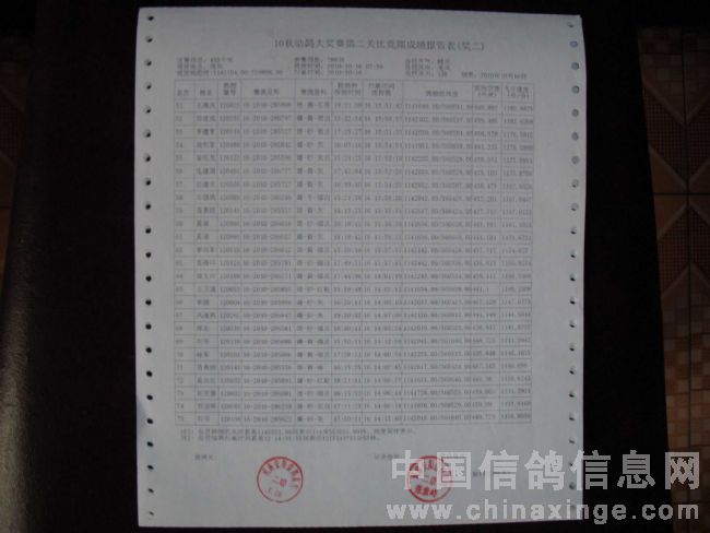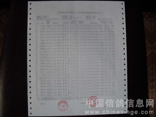 10秋幼鸽大奖赛第二关成绩单