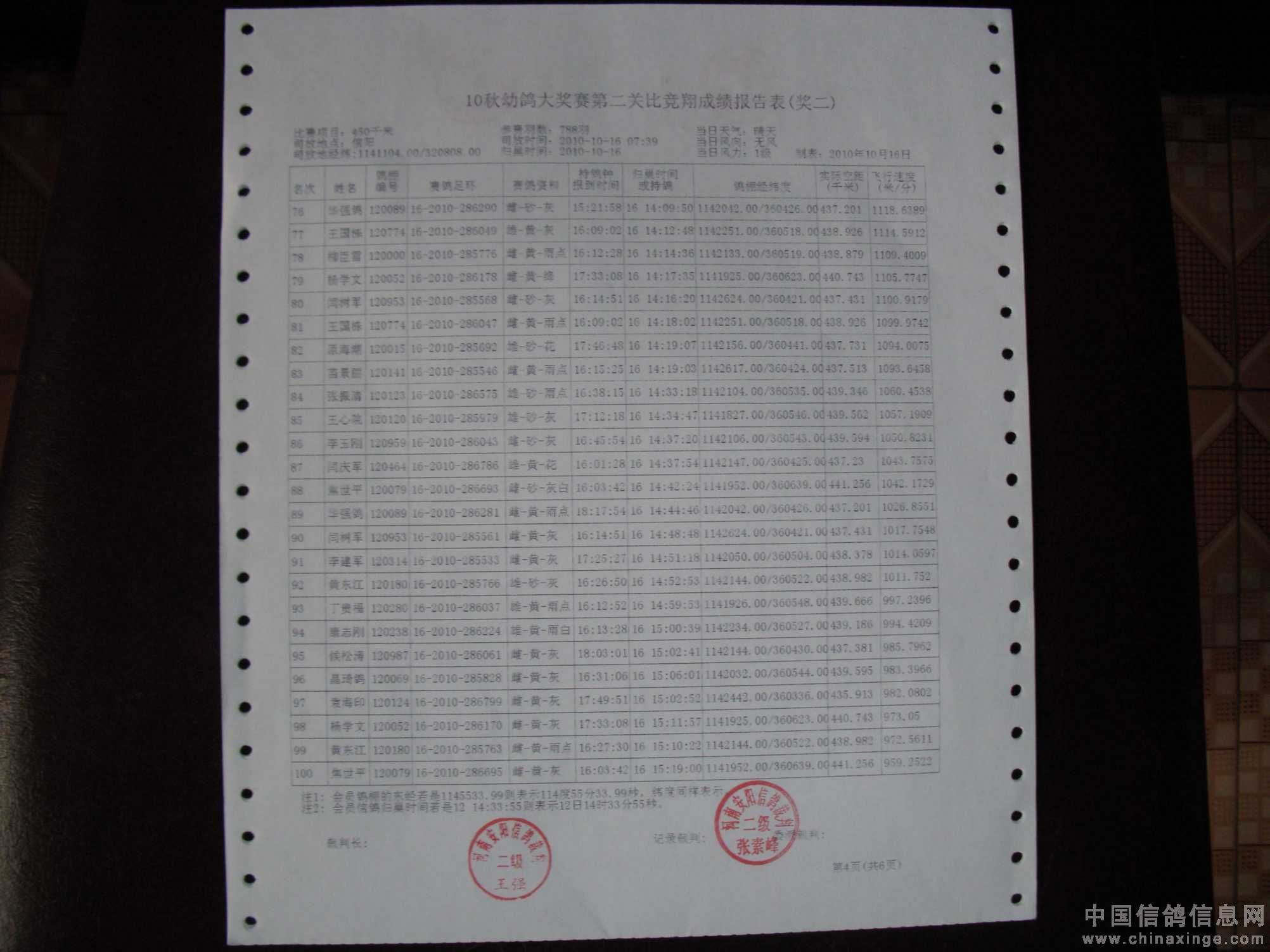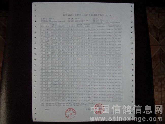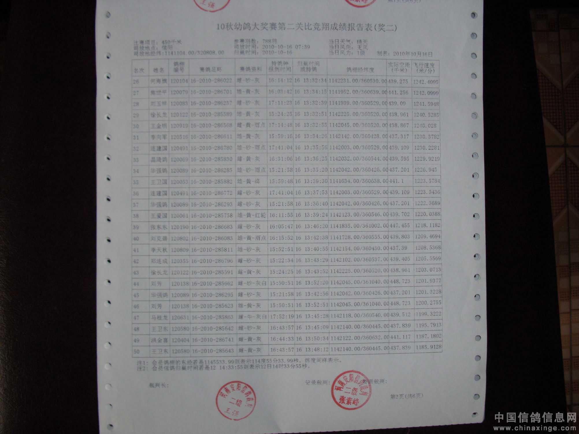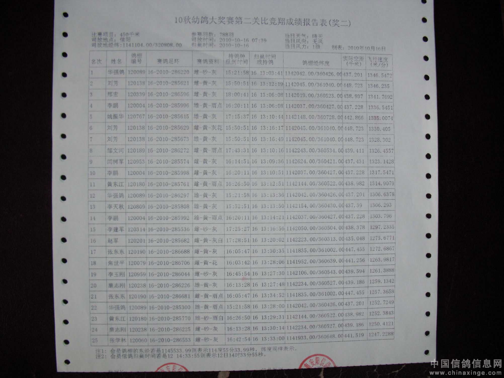 10秋幼鸽大奖赛第二关成绩单