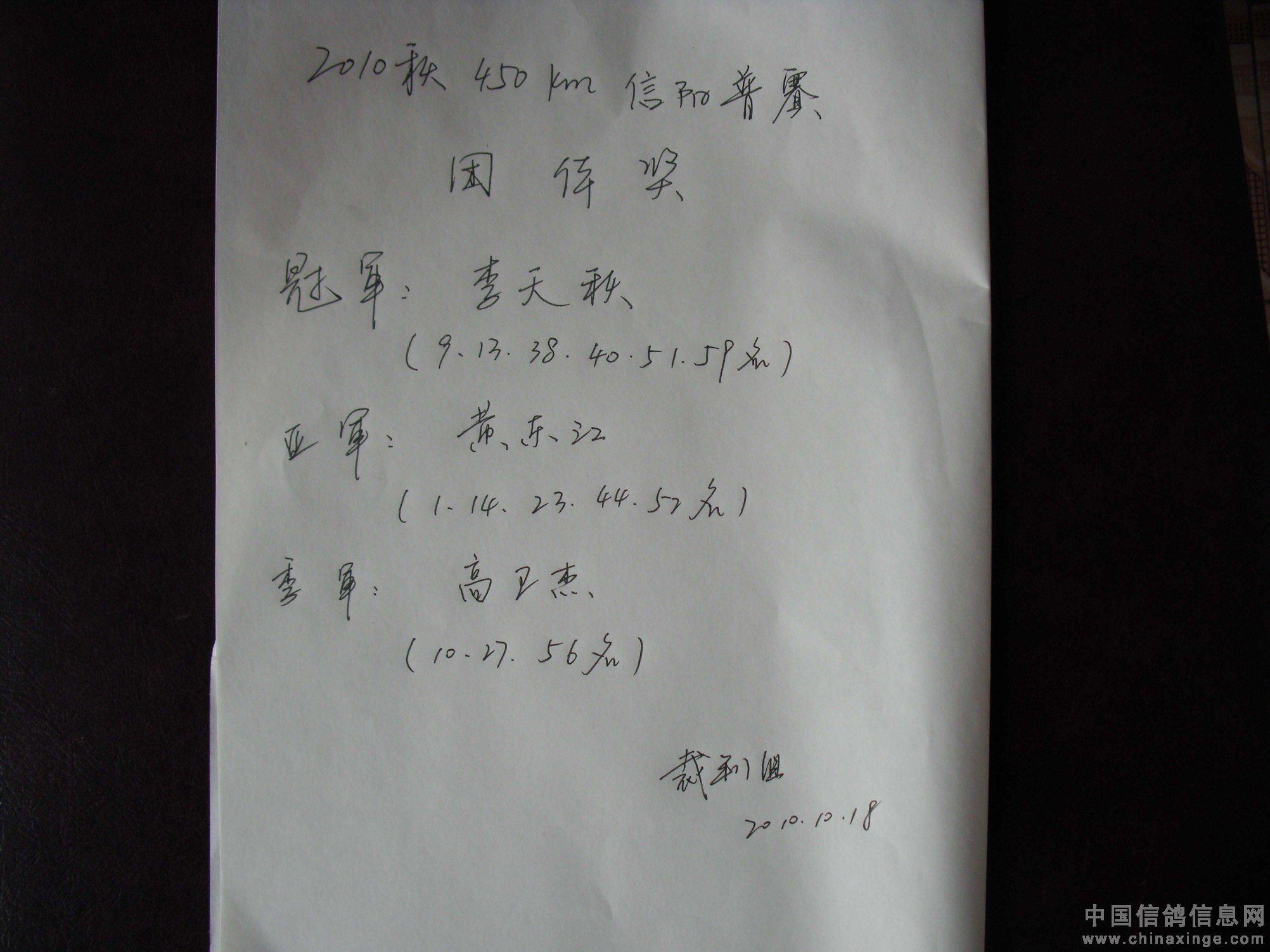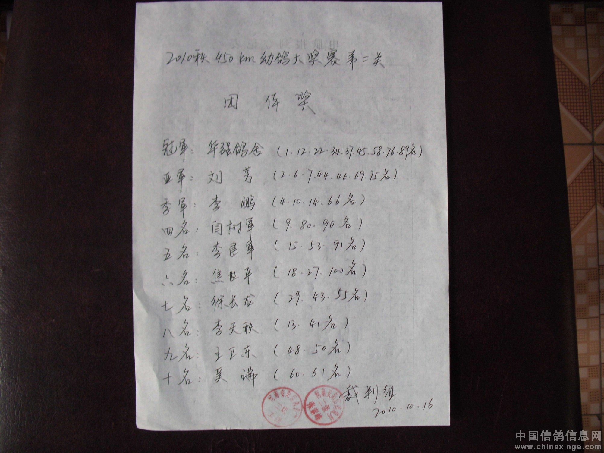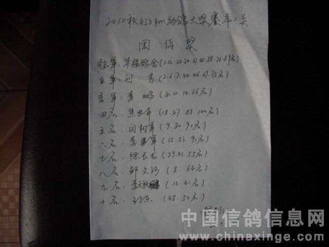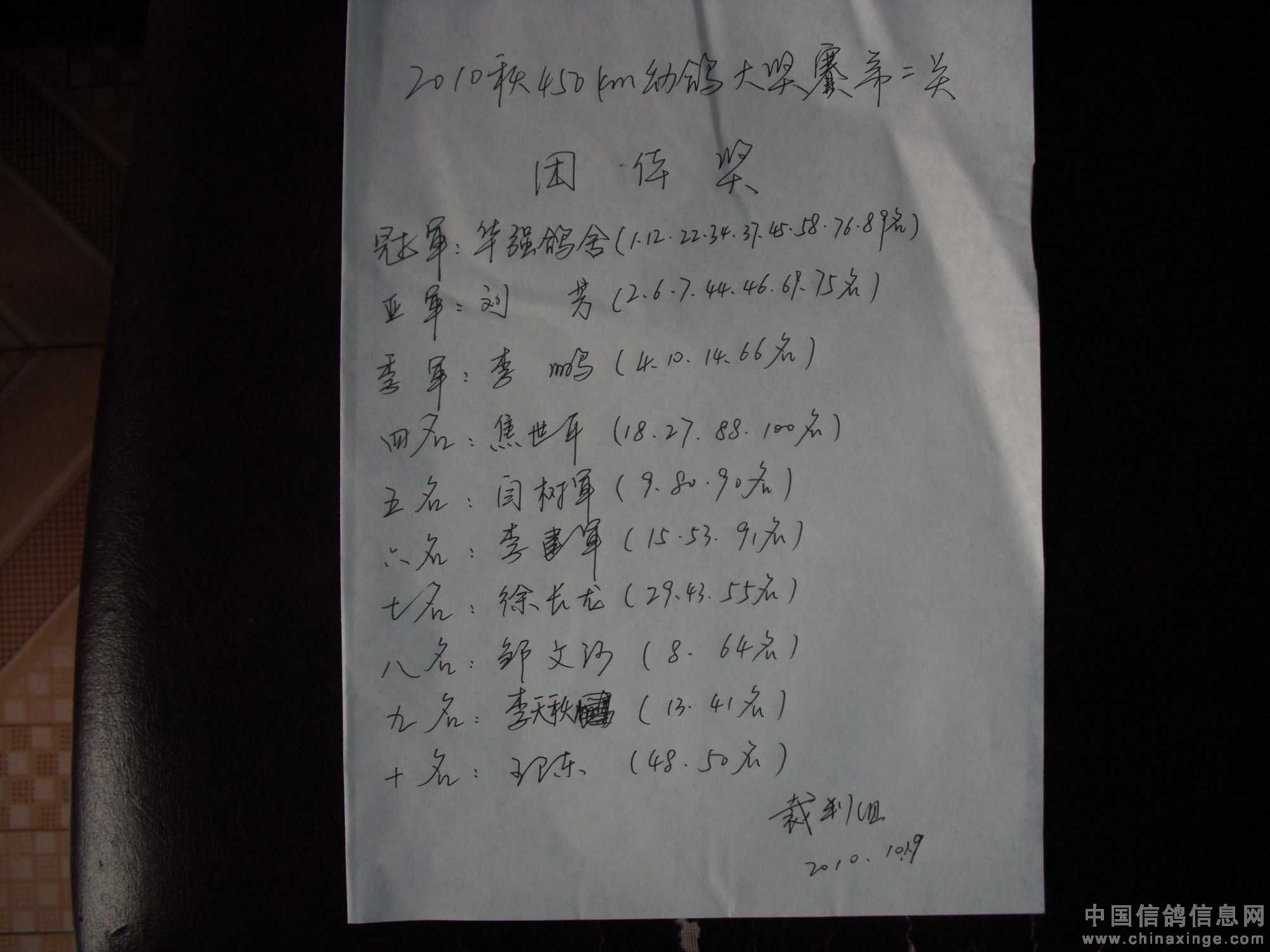 500公里大悟站前十名验鸽(汽车大奖赛冠军)(7-8)