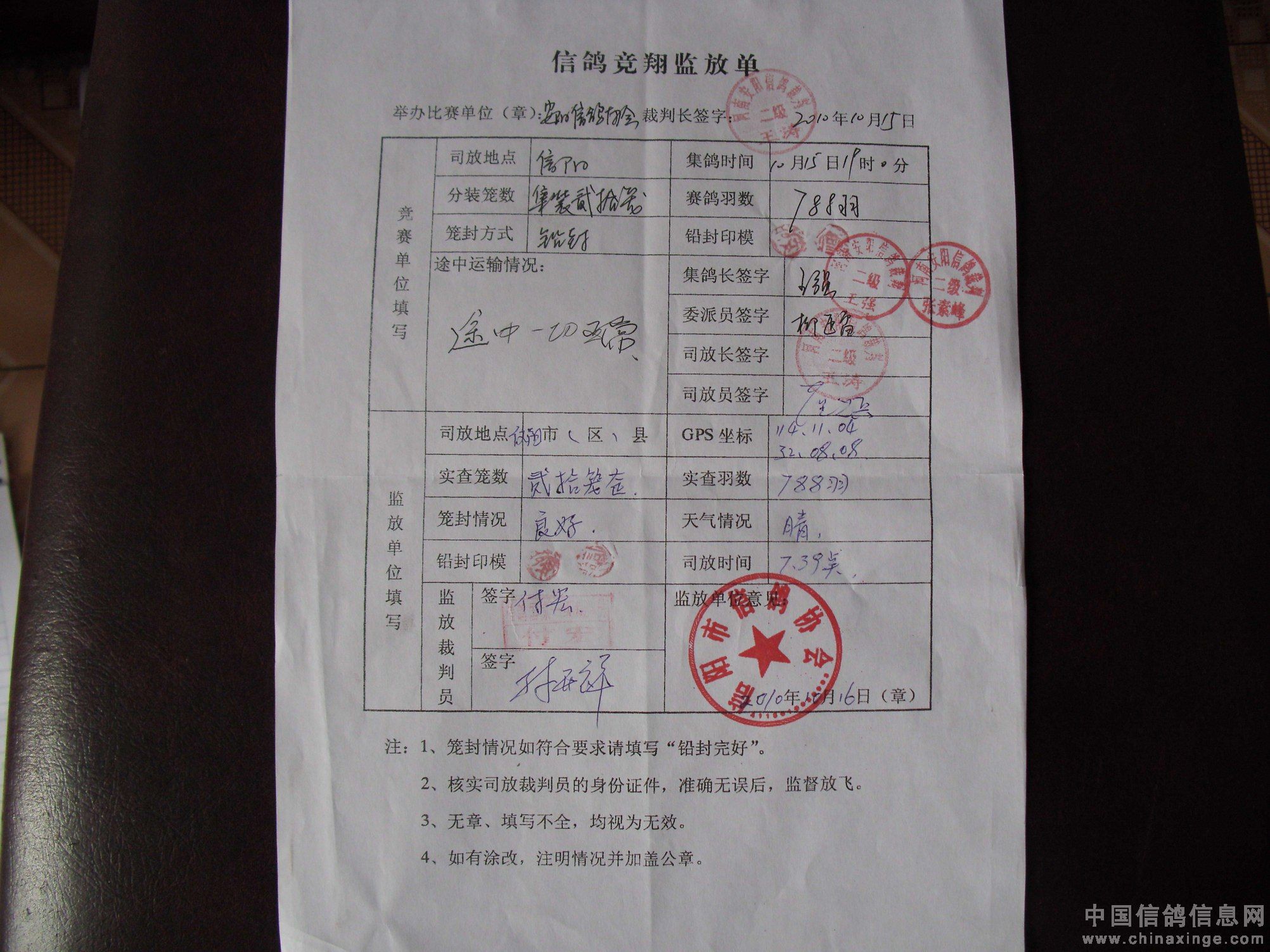 10秋450公里信阳比赛司放实况(图)