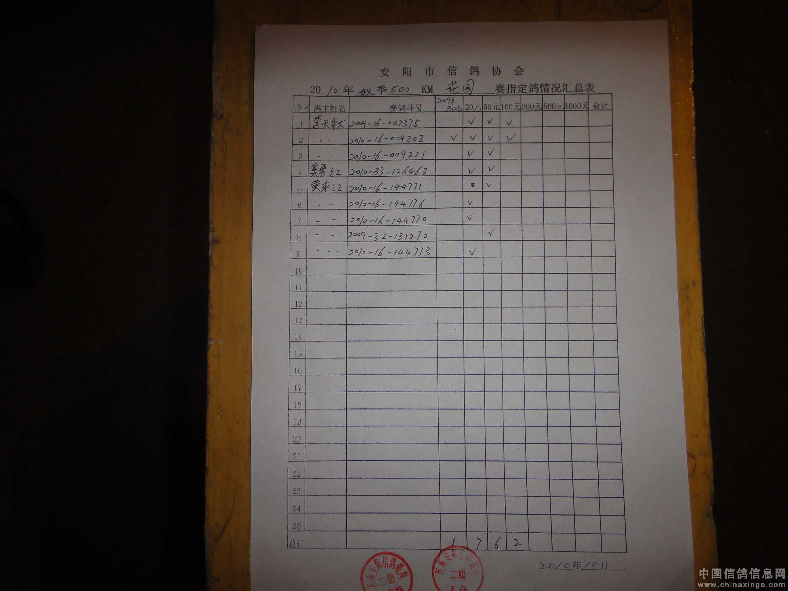 2021秋安阳市信鸽协会500公里大悟站成绩明细(临时)1-100