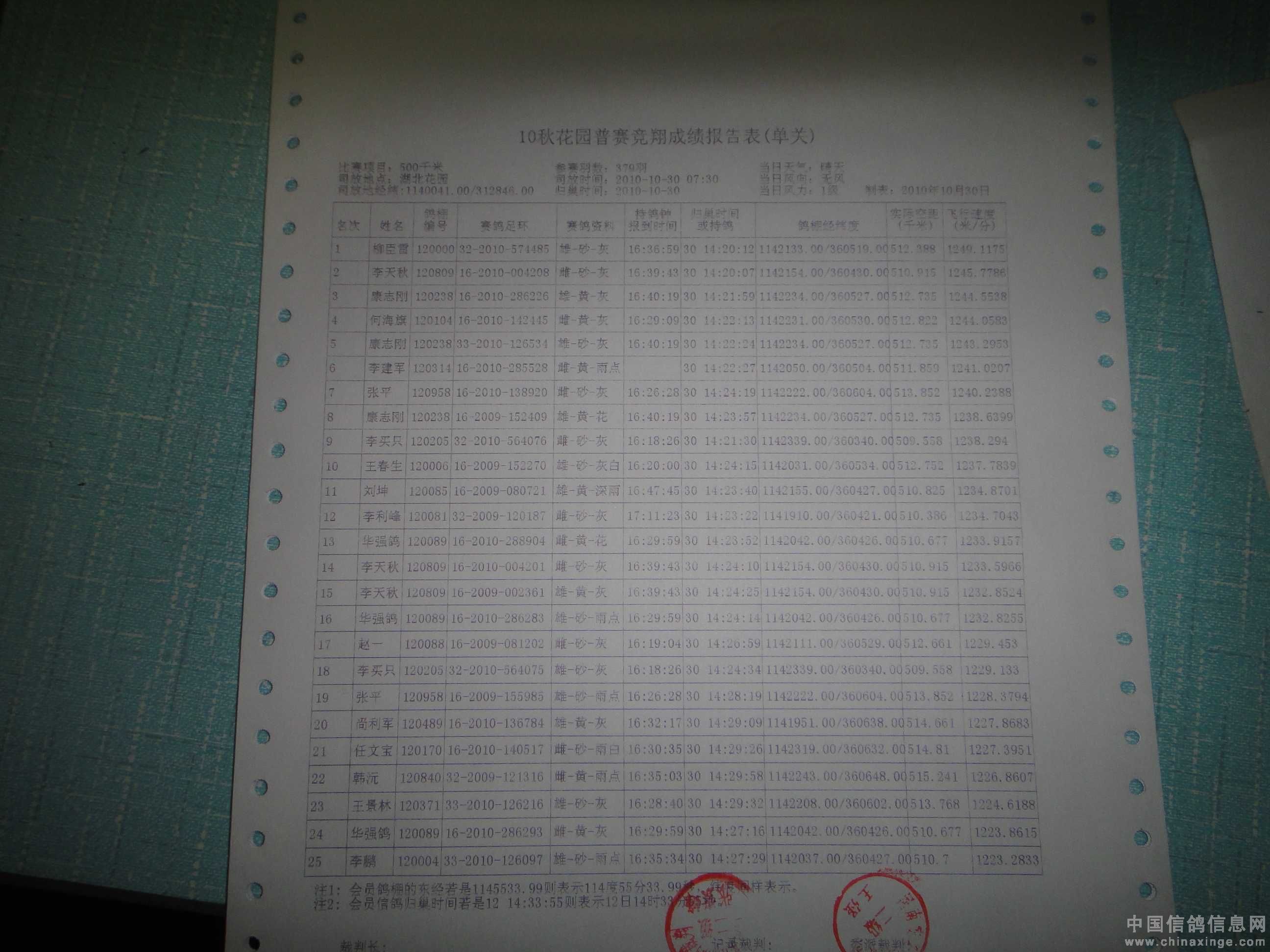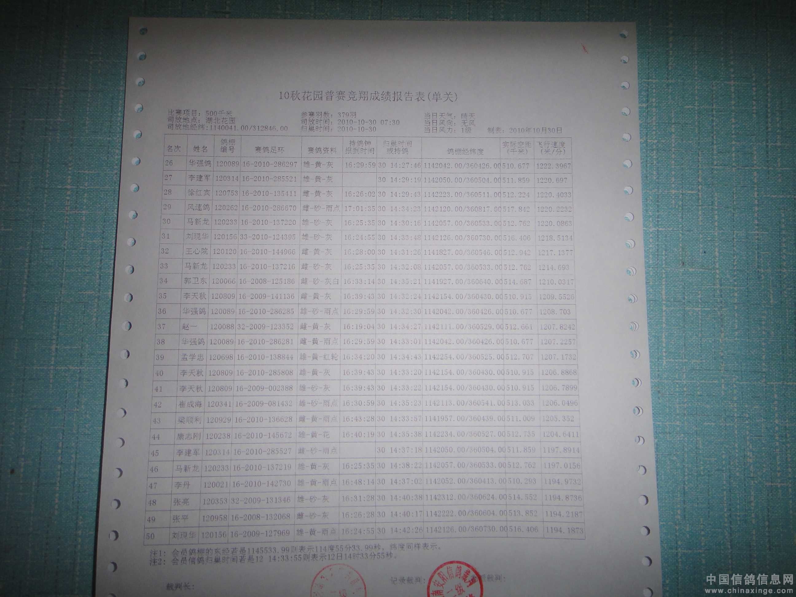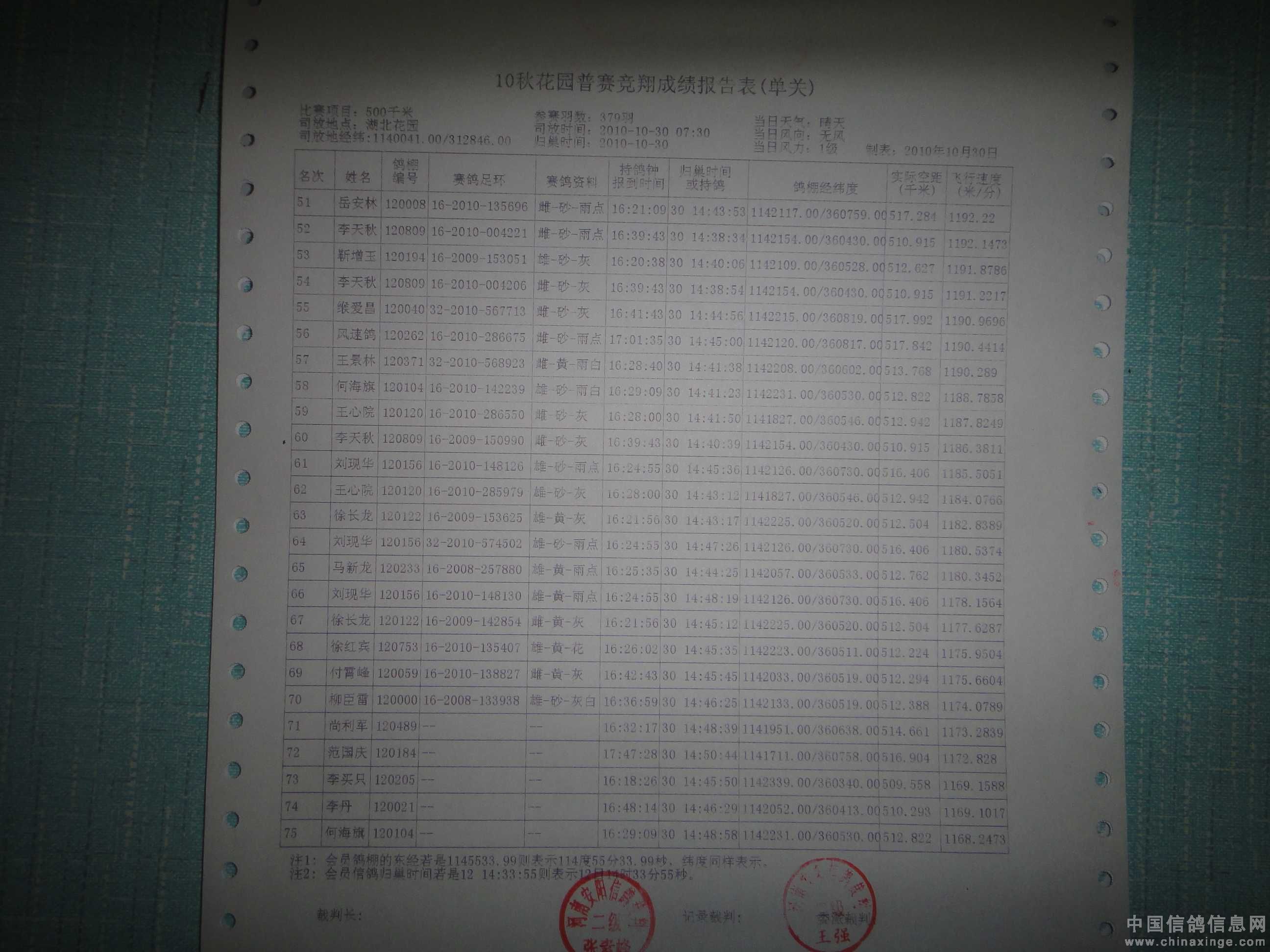500公里大悟站前十名验鸽(汽车大奖赛冠军)(7-8)