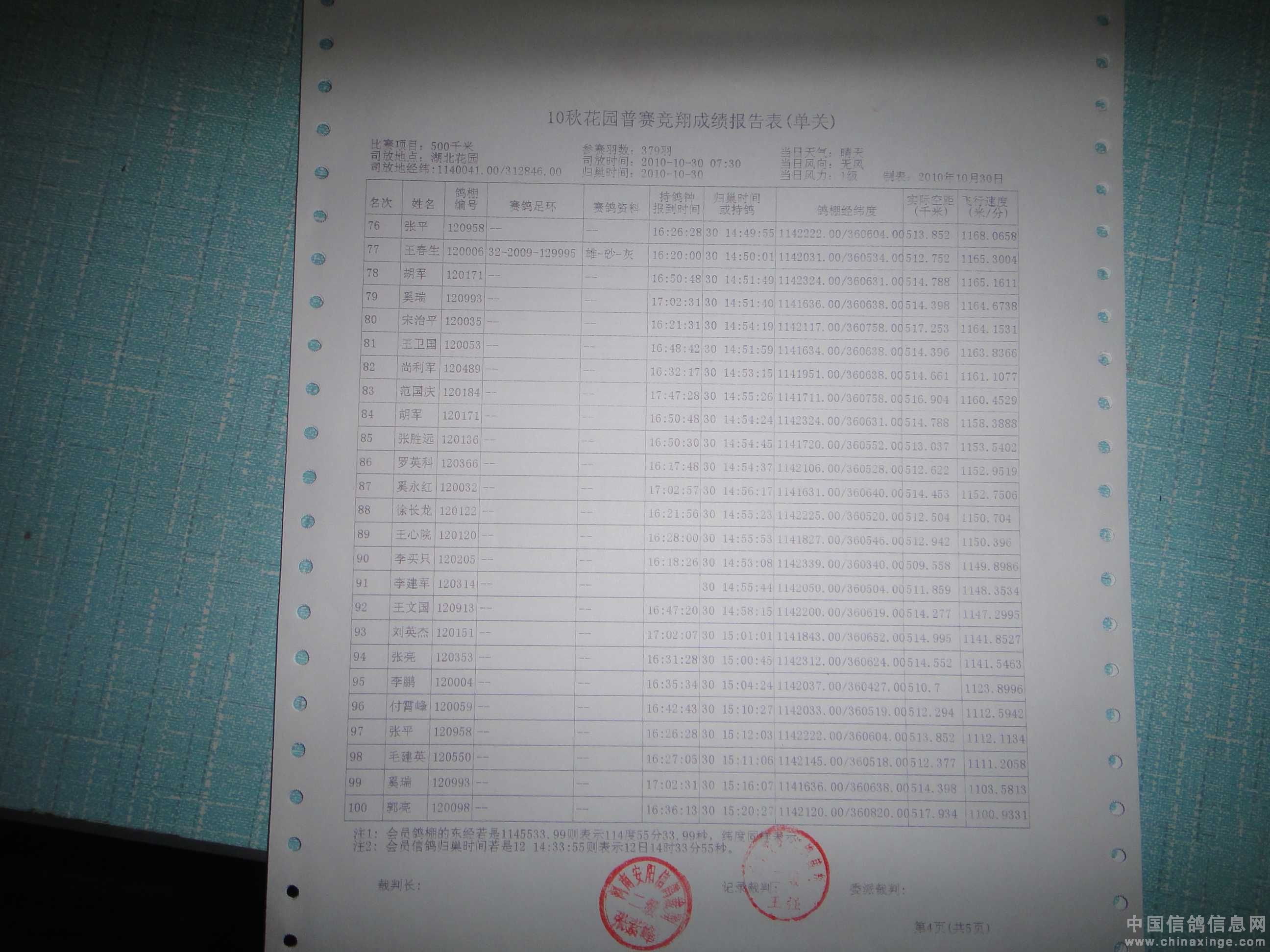 2021秋安阳市信鸽协会500公里大悟站成绩明细(临时)1-100