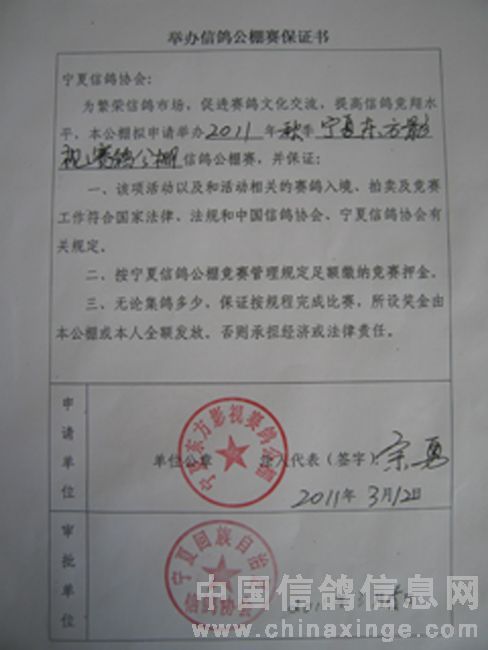 宁夏信鸽协会关于宁夏国力公棚规程公告