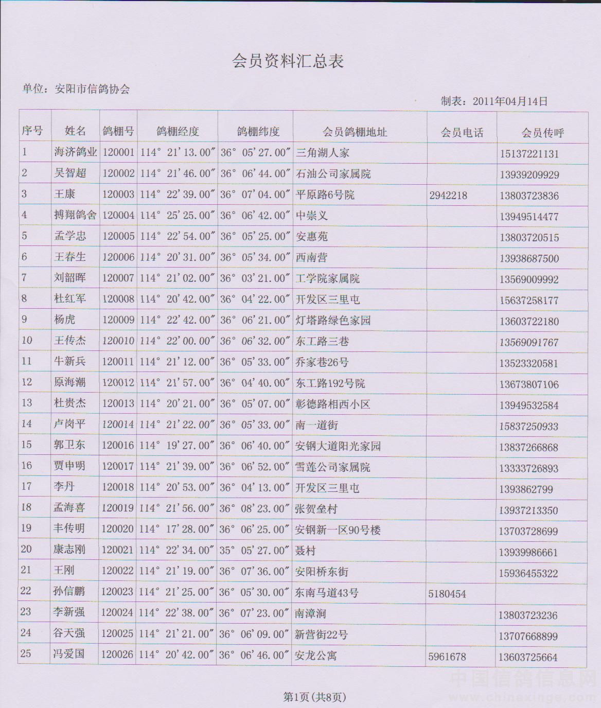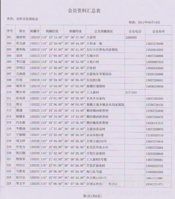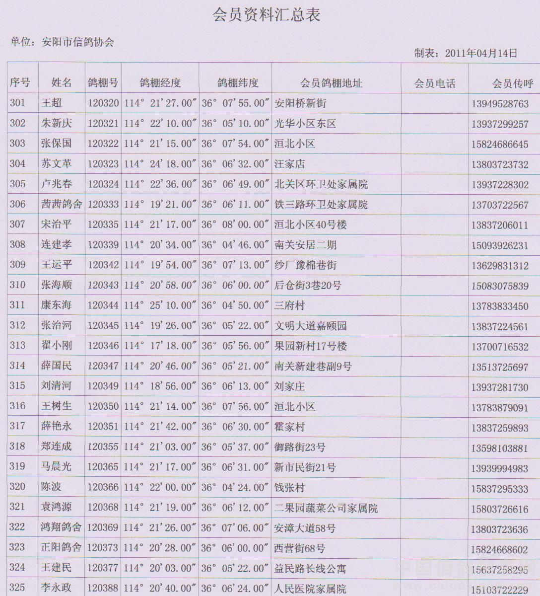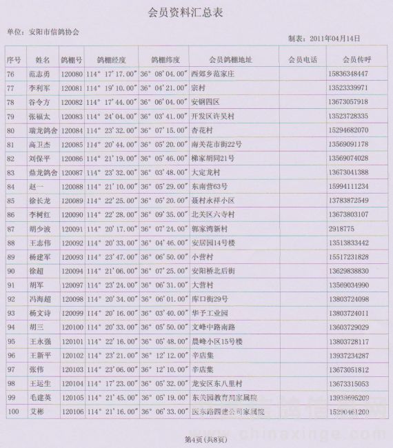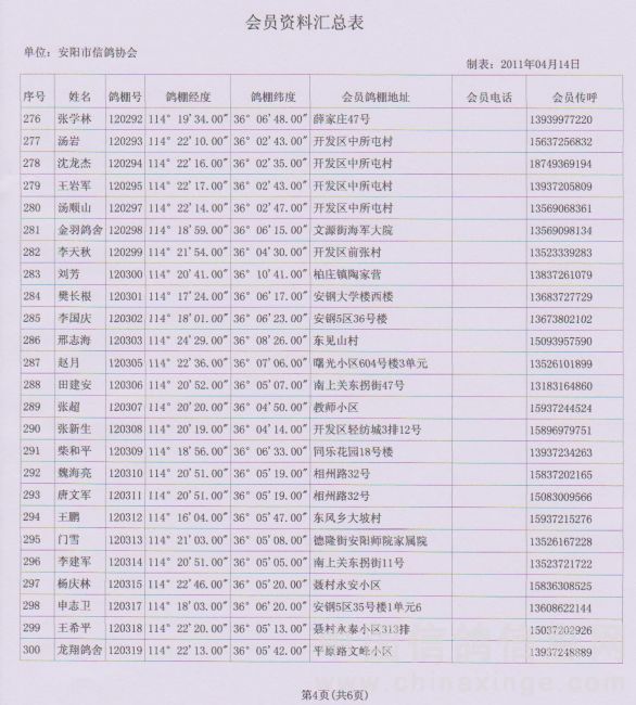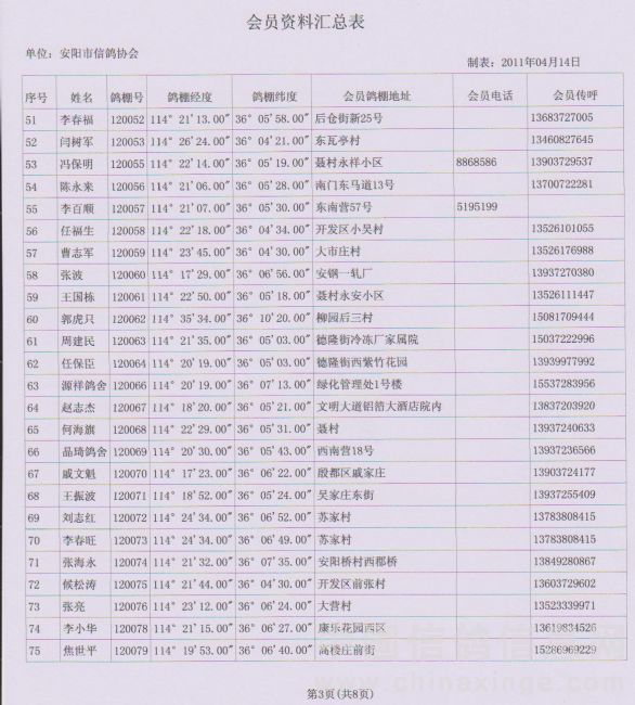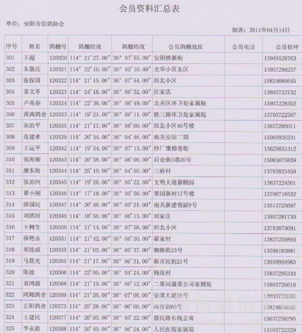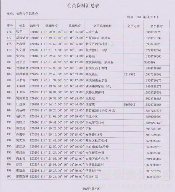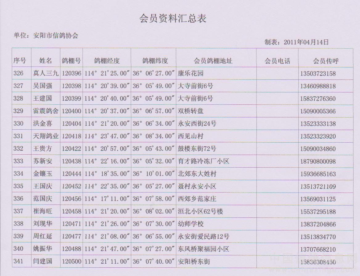 请广大会员仔细核对自己的经纬度,如有差错请抓紧时间与魏宏联系以免比赛出现差错.联系电话:13903721895