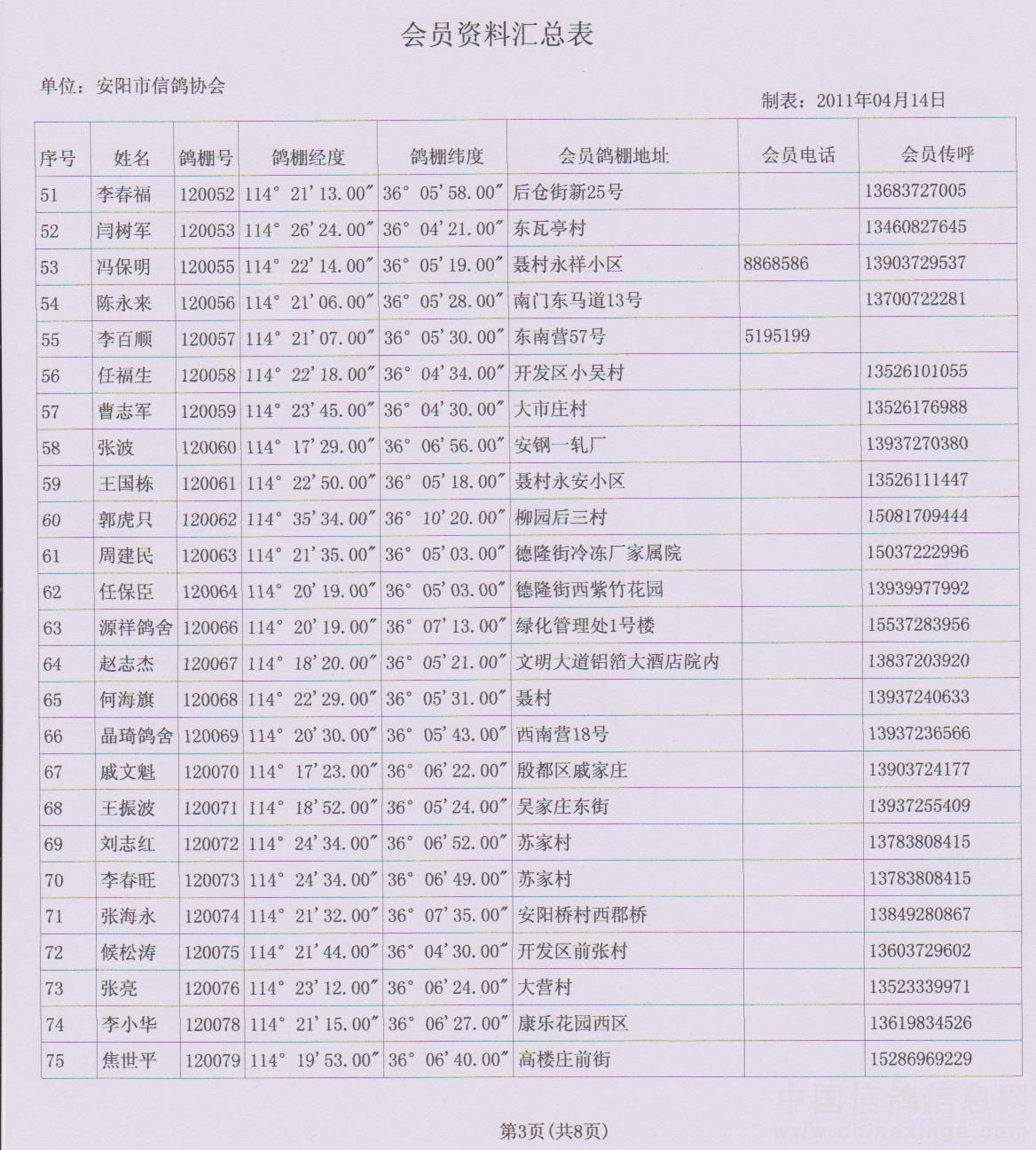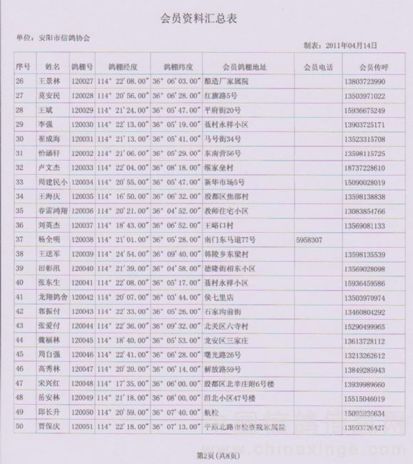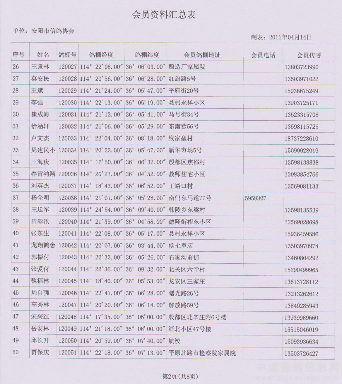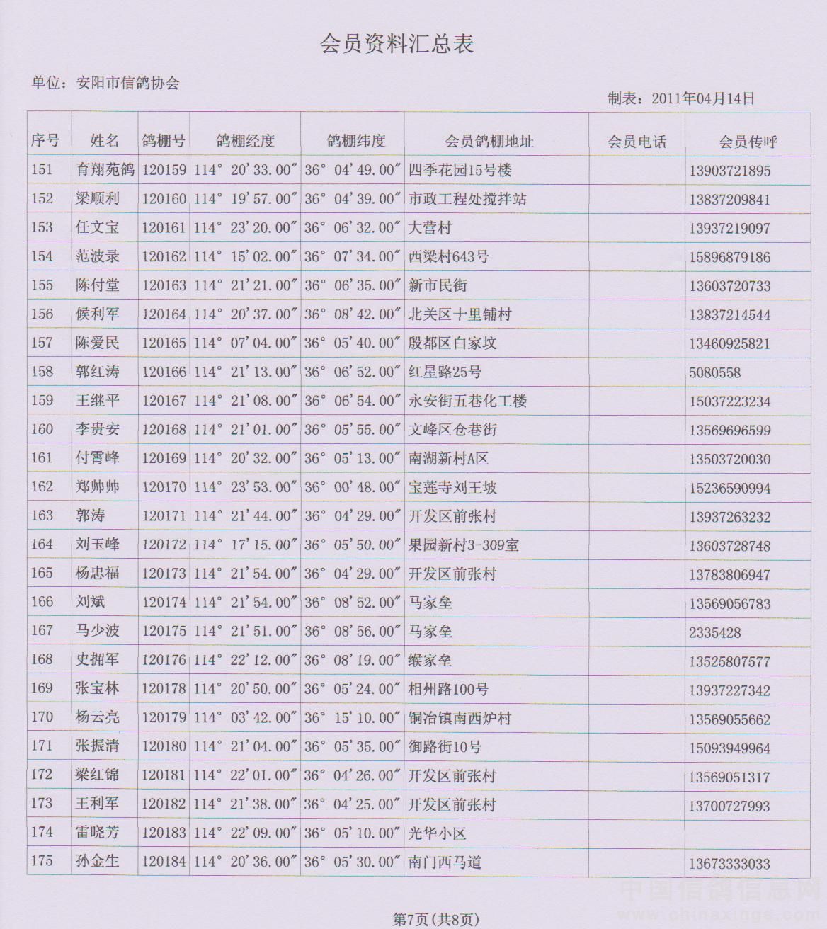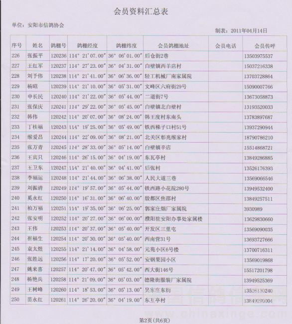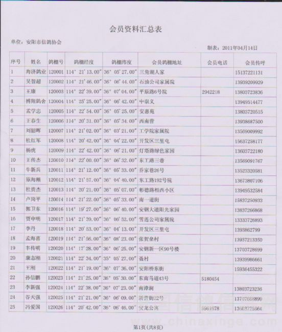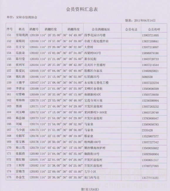 请广大会员仔细核对自己的经纬度,如有差错请抓紧时间与魏宏联系以免比赛出现差错.联系电话:13903721895