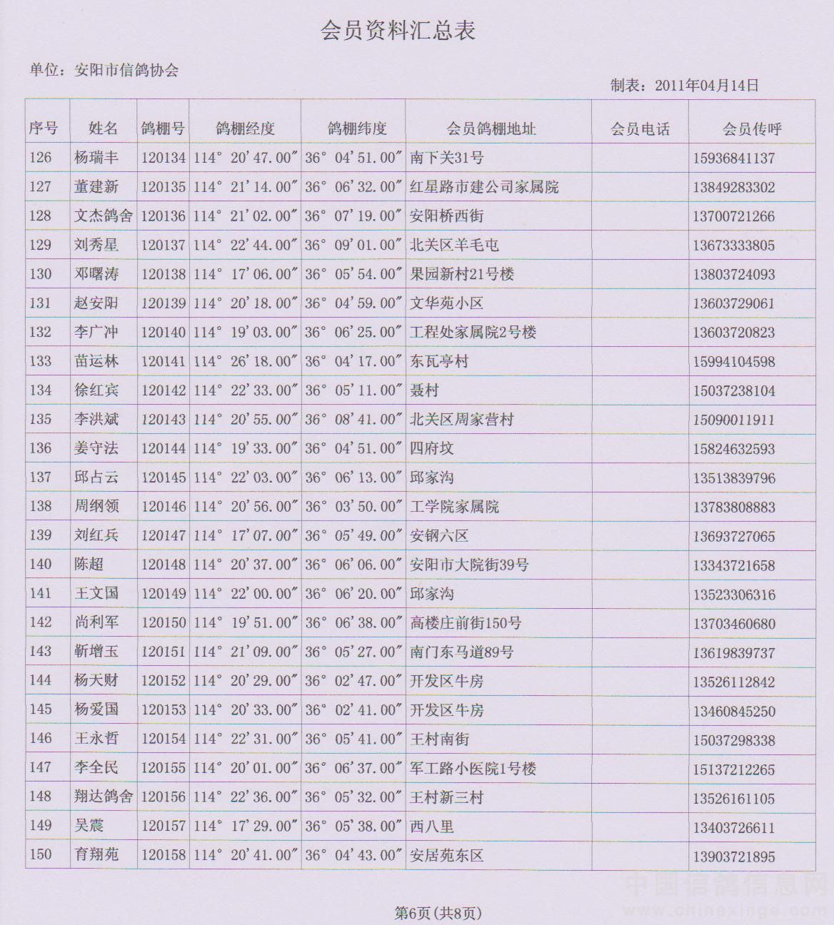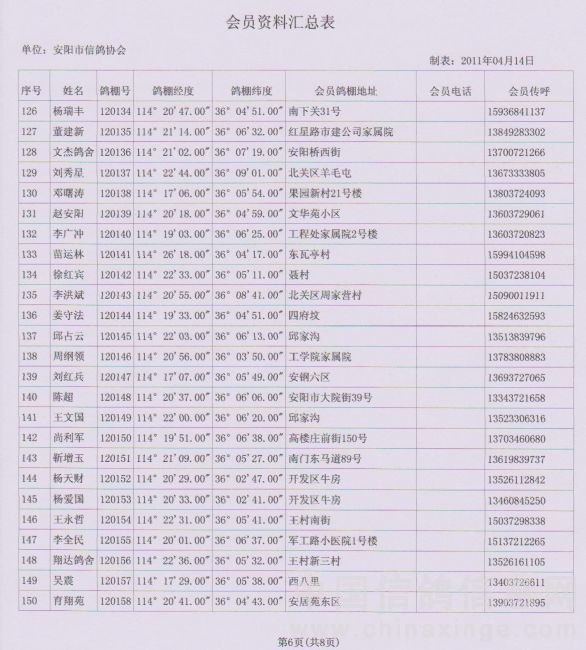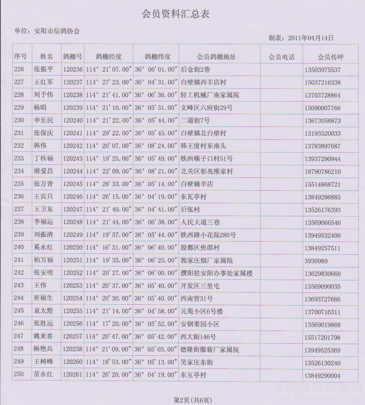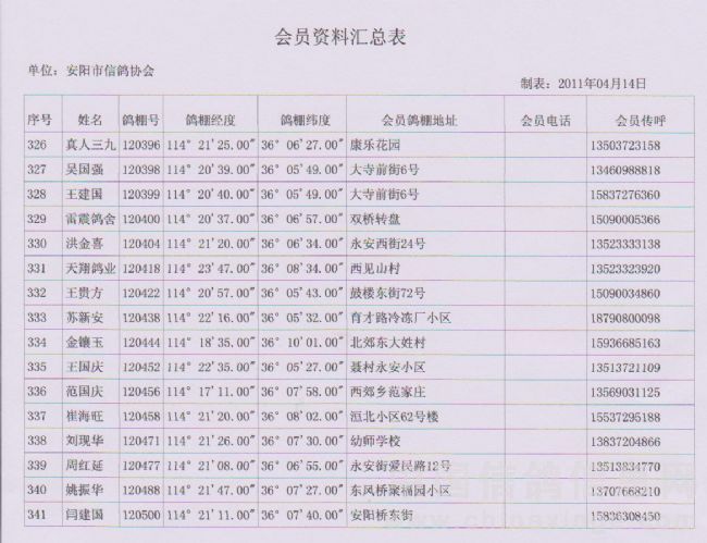 2021秋安阳市信鸽协会500公里大悟站成绩明细(临时)101-150