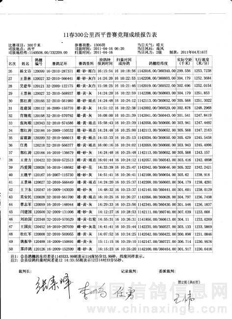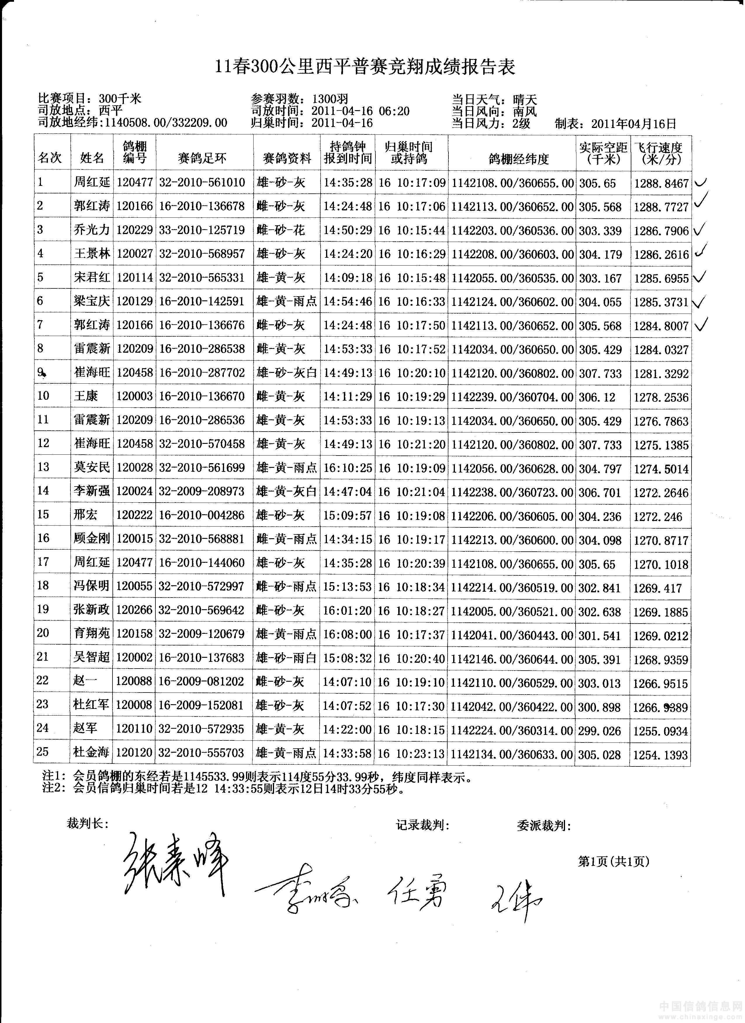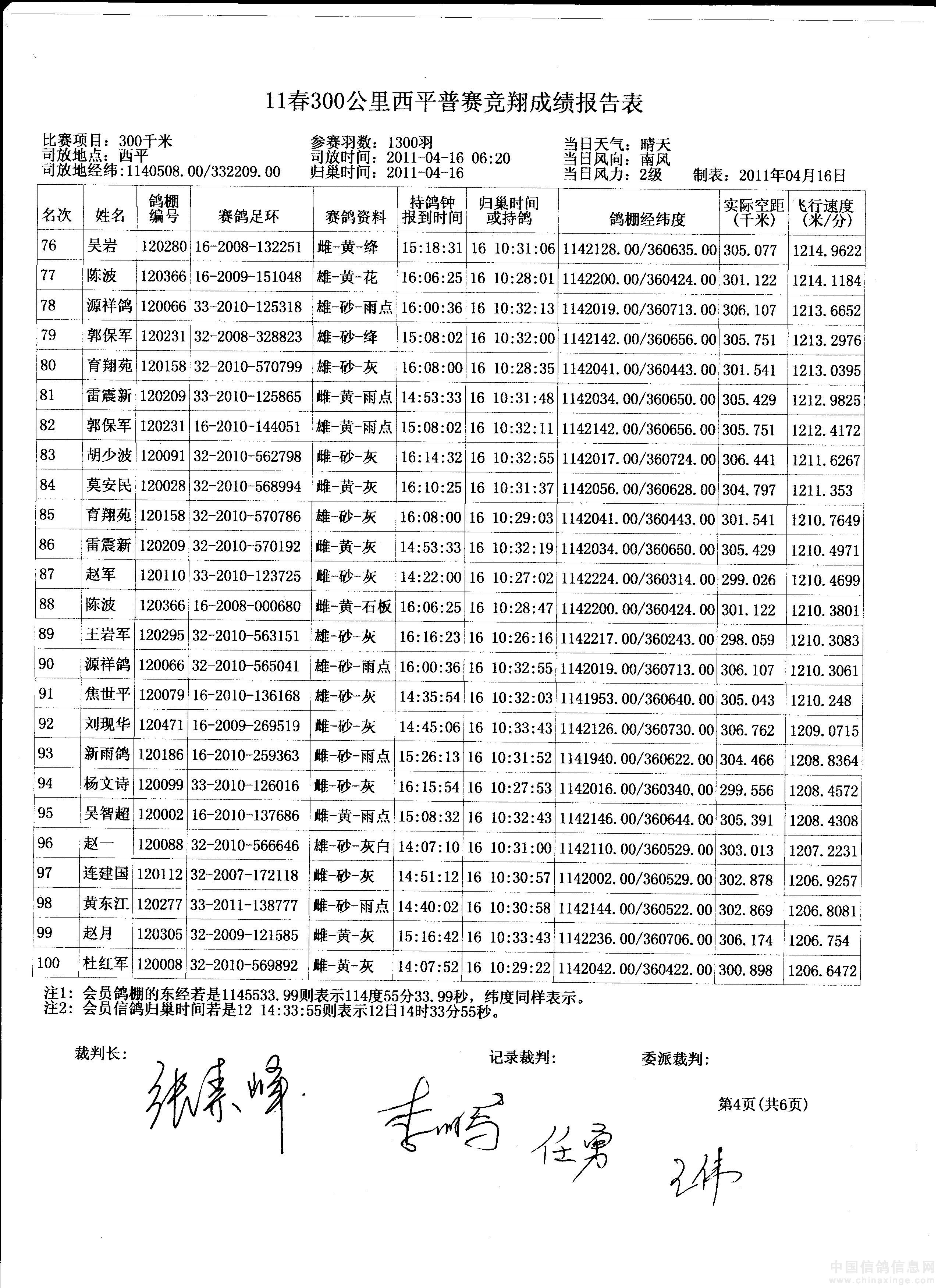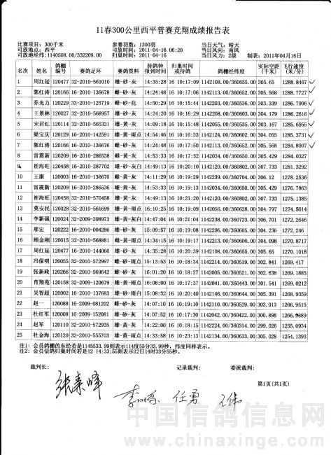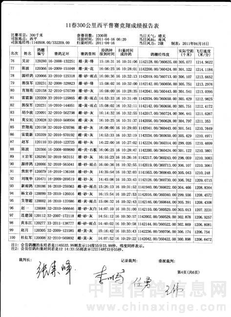 2021秋安阳市信鸽协会500公里大悟站成绩明细(临时)1-100