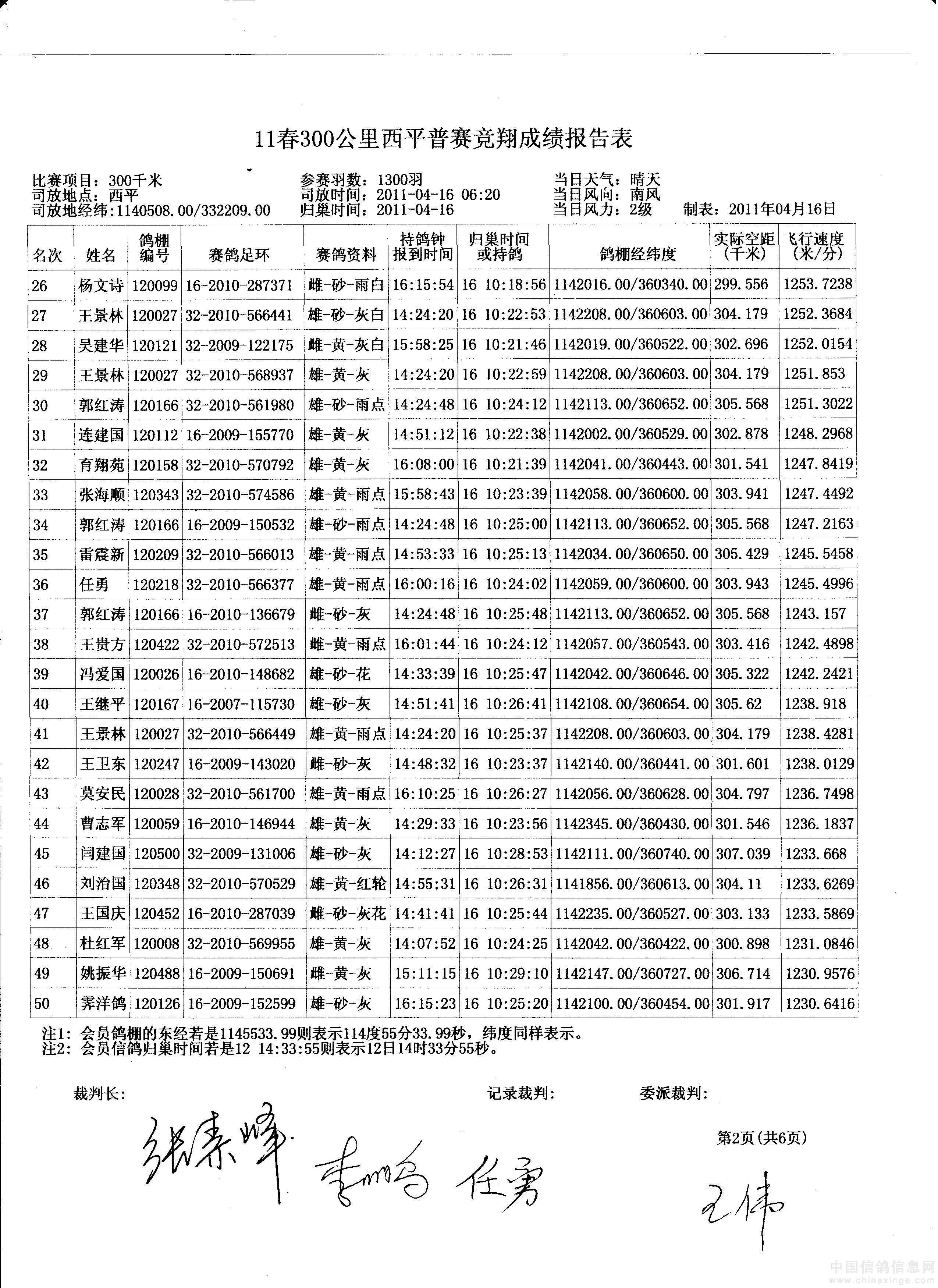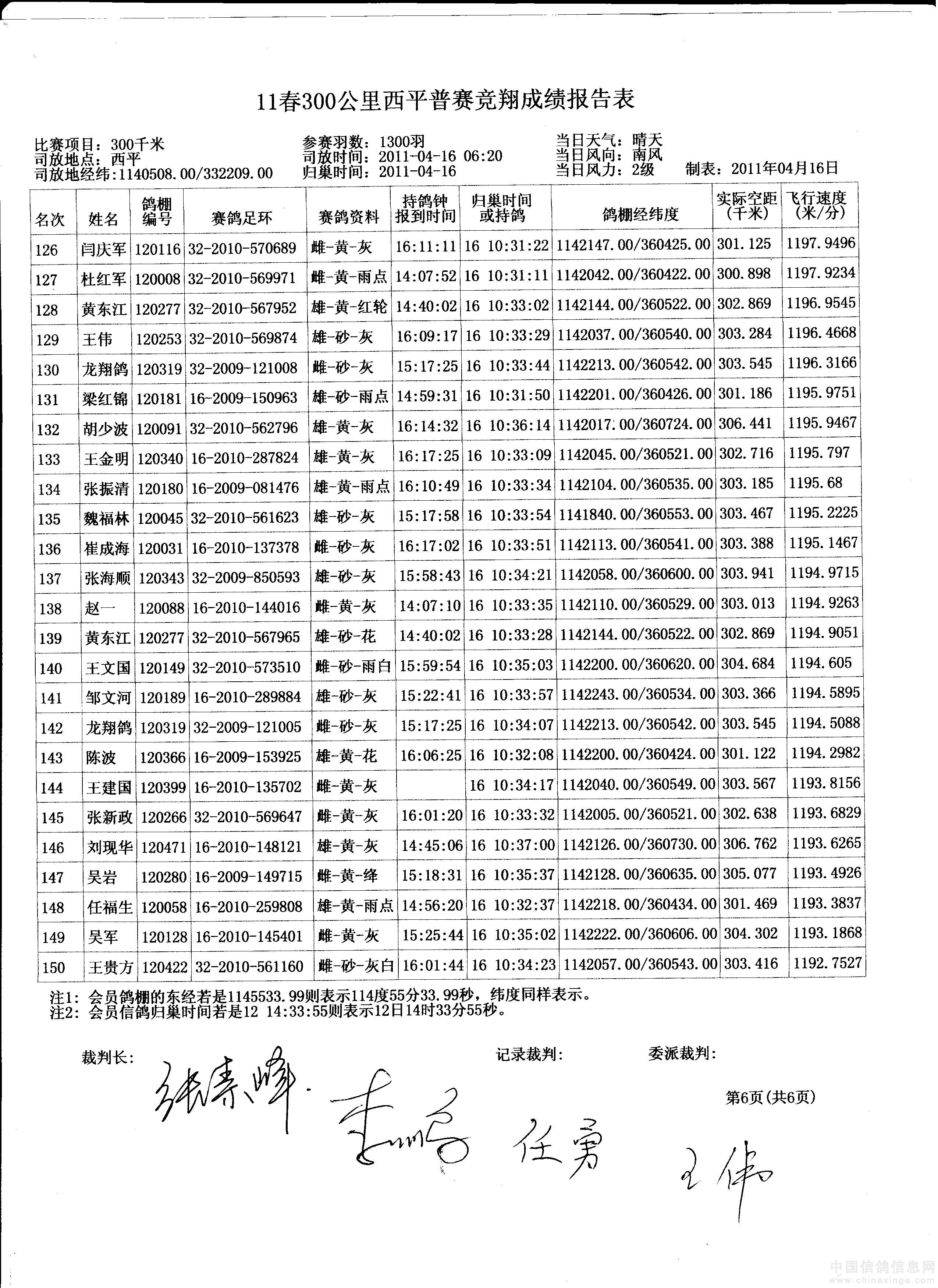 2021秋安阳市信鸽协会500公里大悟站成绩明细(临时)101-150