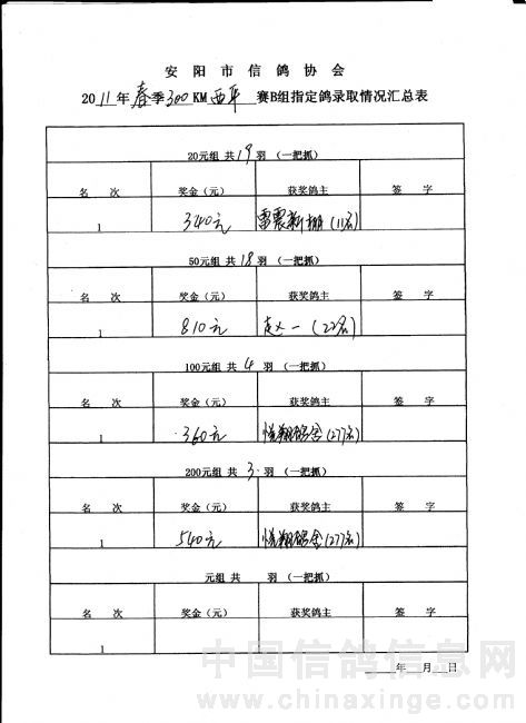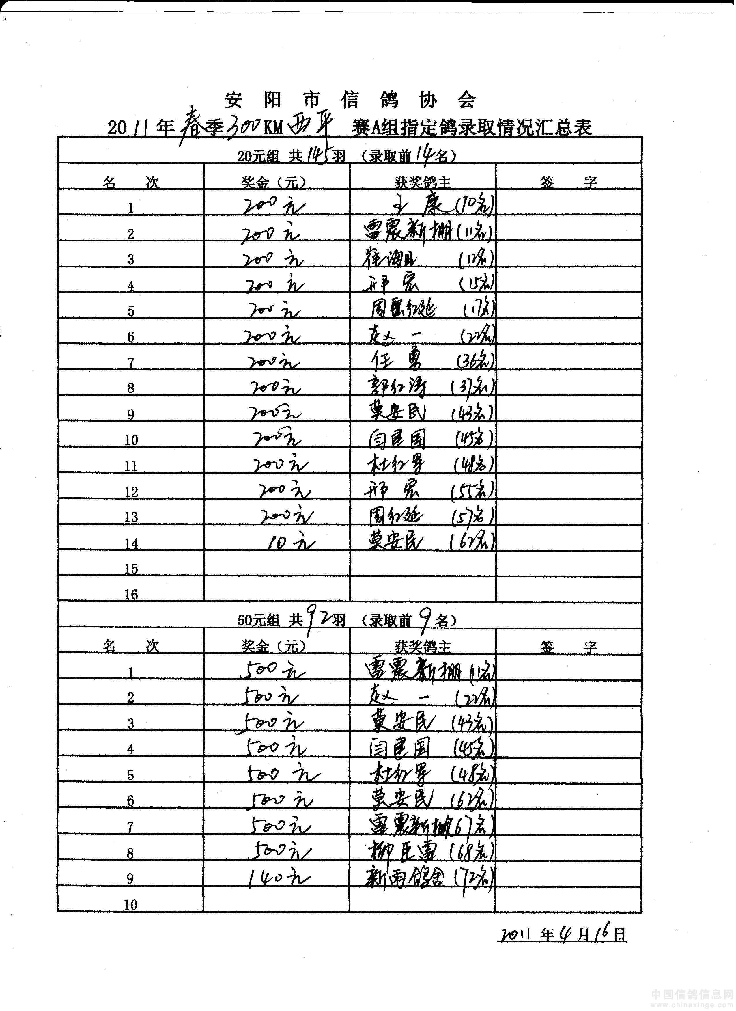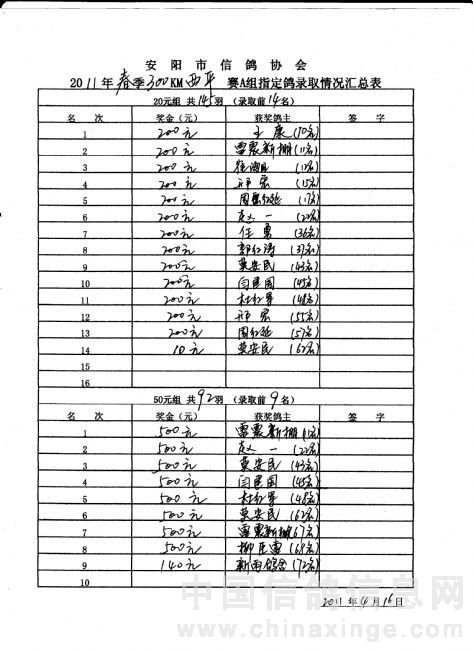 2021秋安阳市信鸽协会500公里大悟站成绩明细(临时)1-100