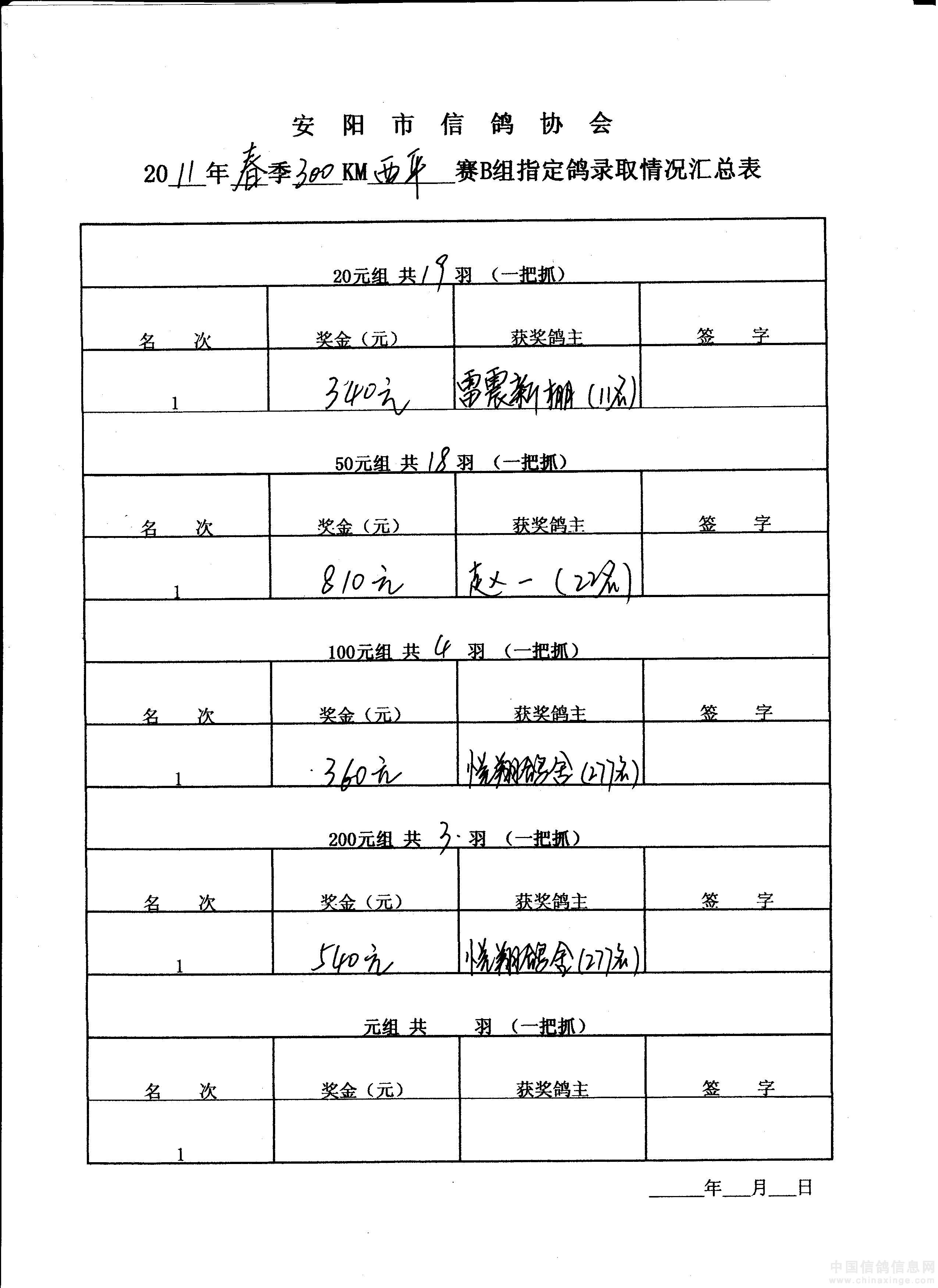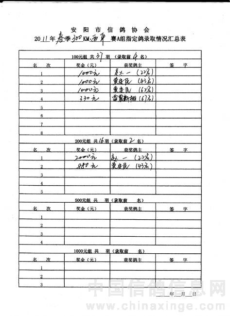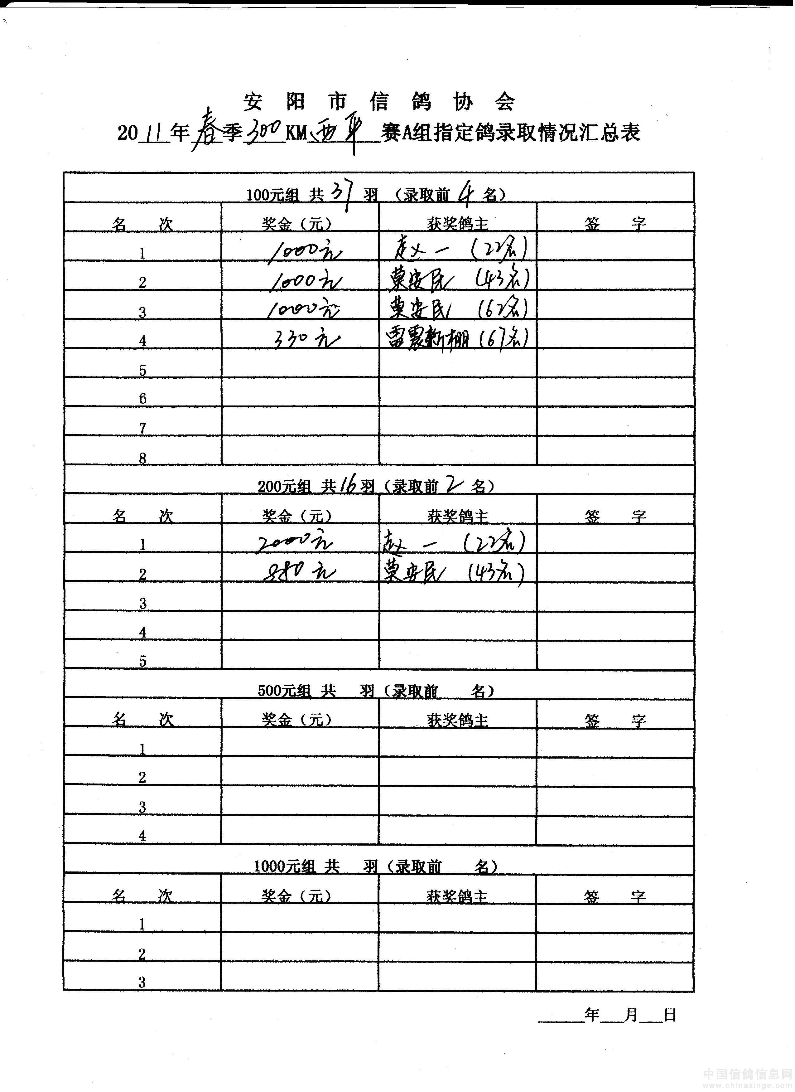 2021秋安阳市信鸽协会500公里大悟站指定获奖明细(临时)