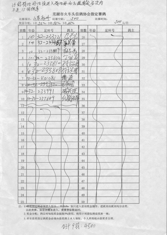 芜湖火车头信鸽协会长丰站成绩(临时)