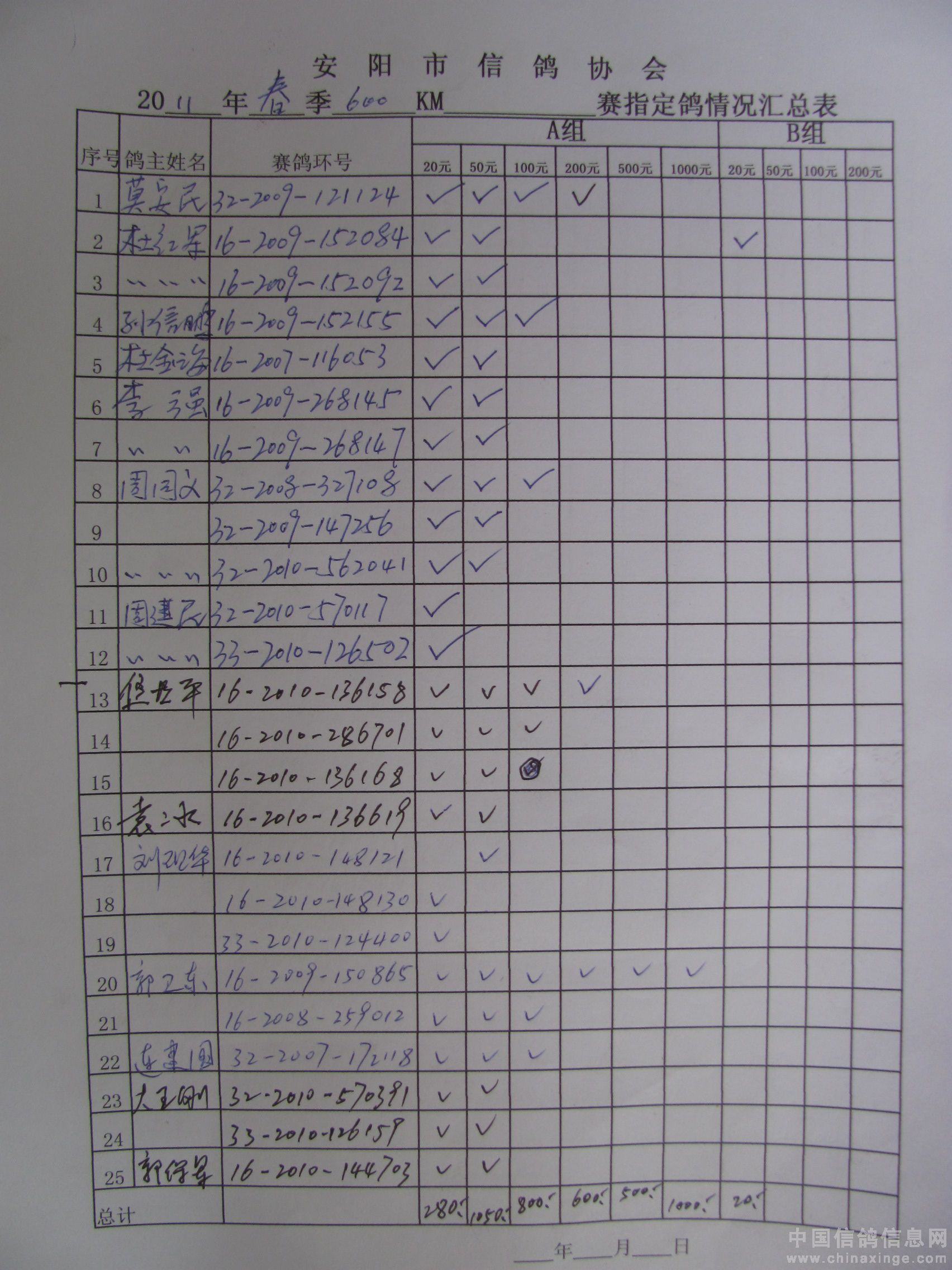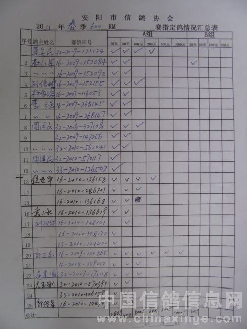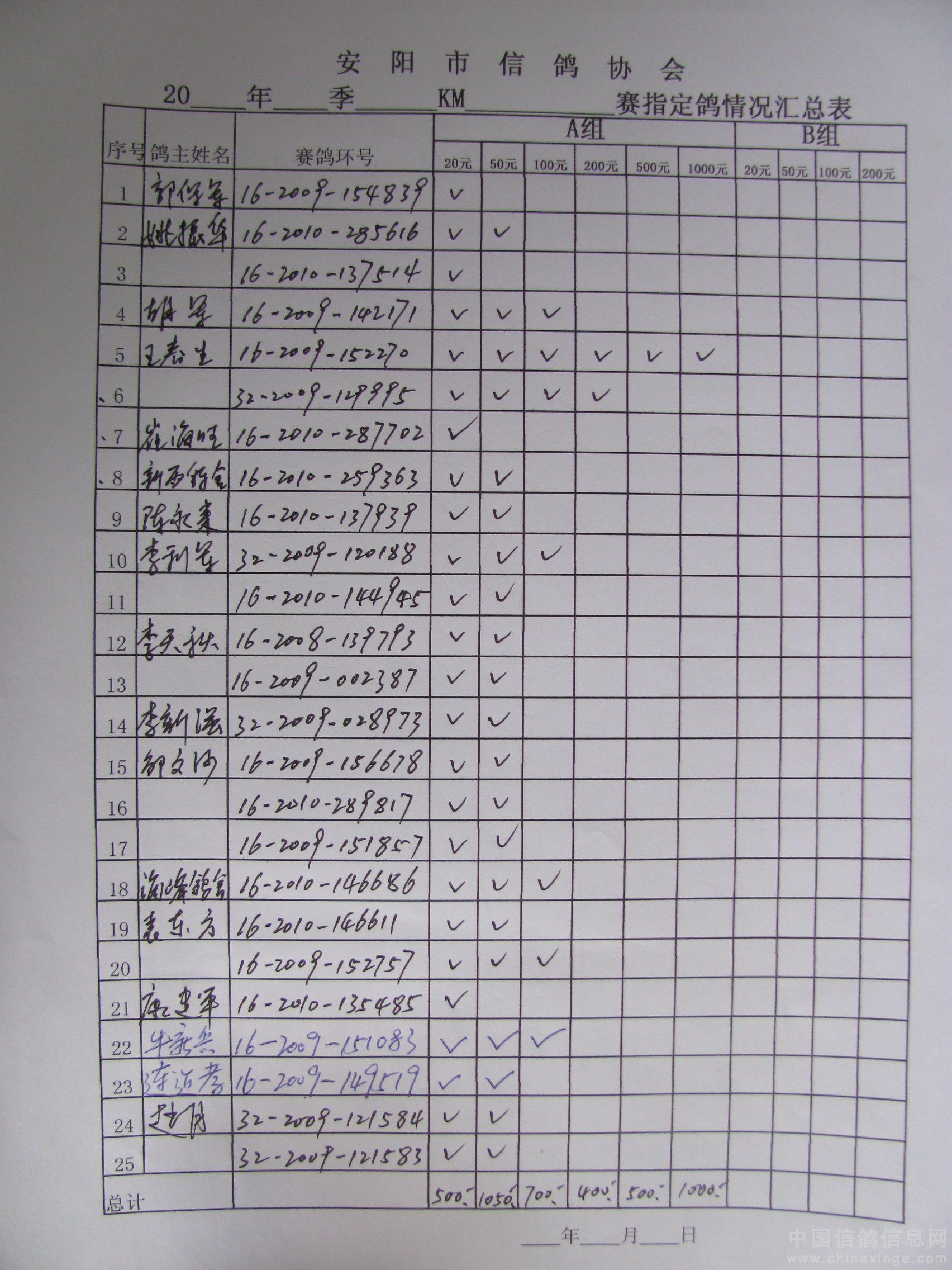 2021秋安阳市信鸽协会500公里大悟站成绩明细(临时)1-100