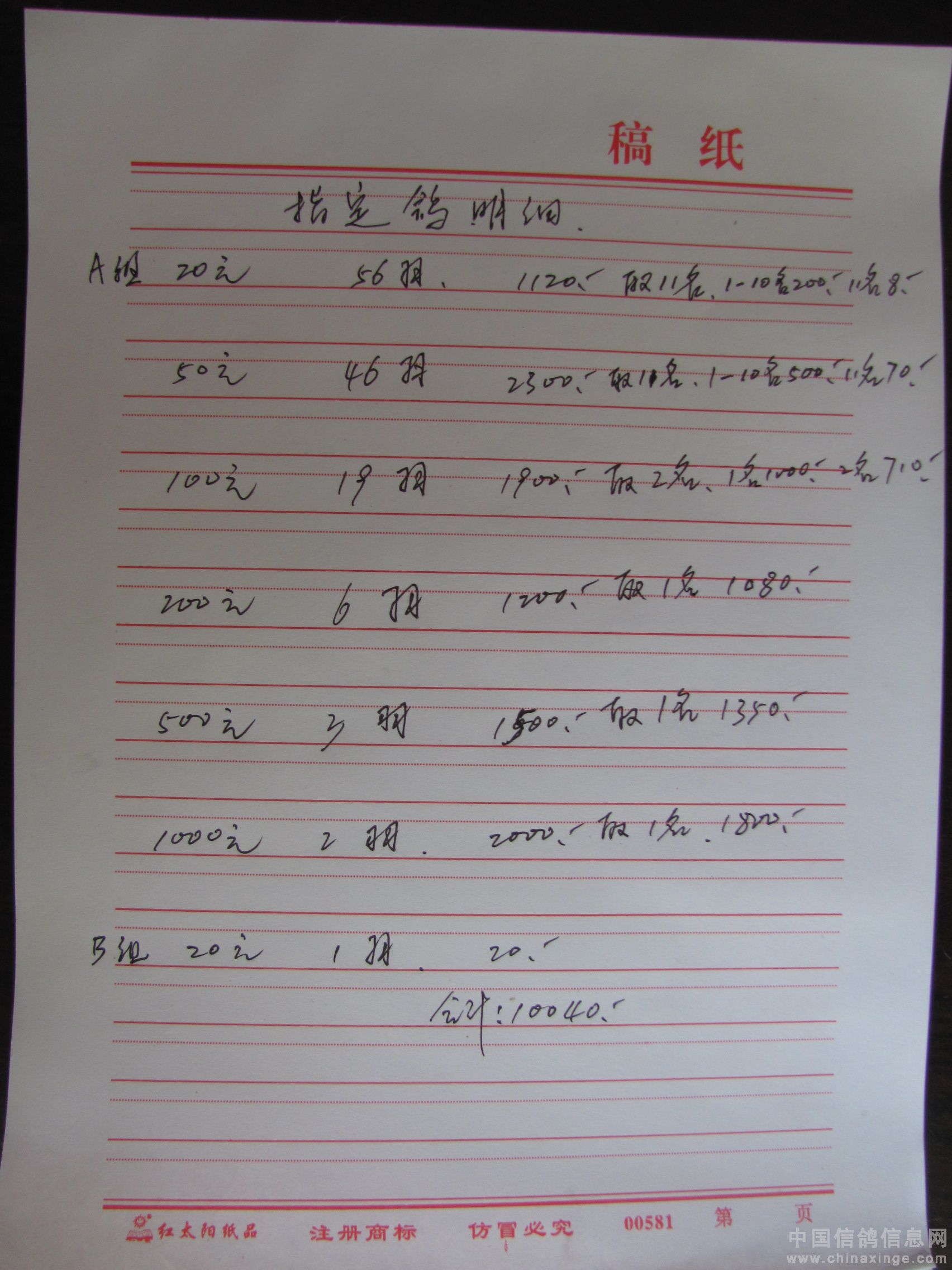 500公里大悟站前十名验鸽(汽车大奖赛冠军)(7-8)