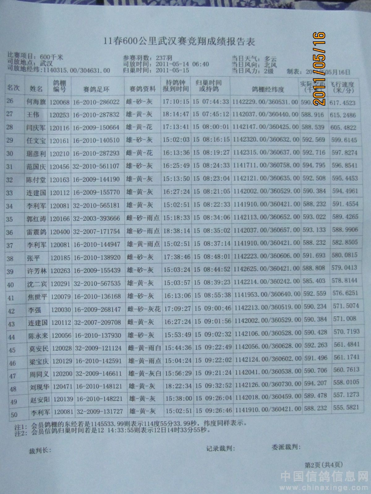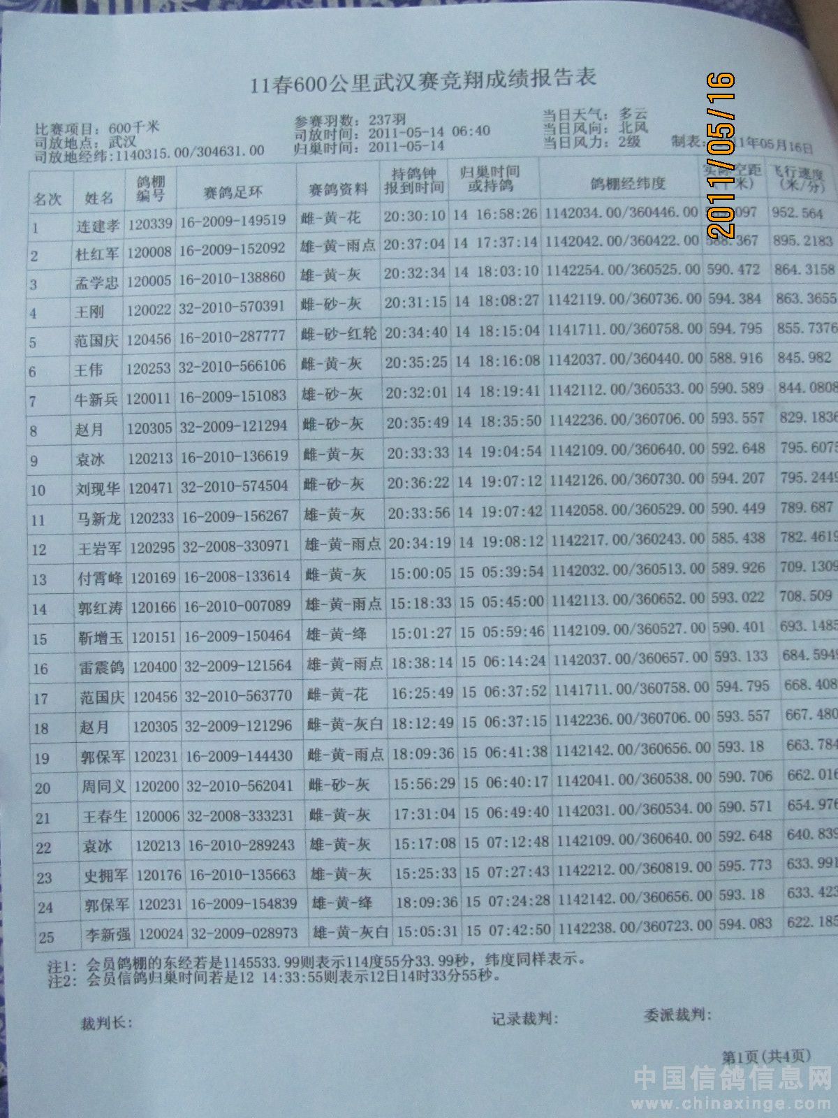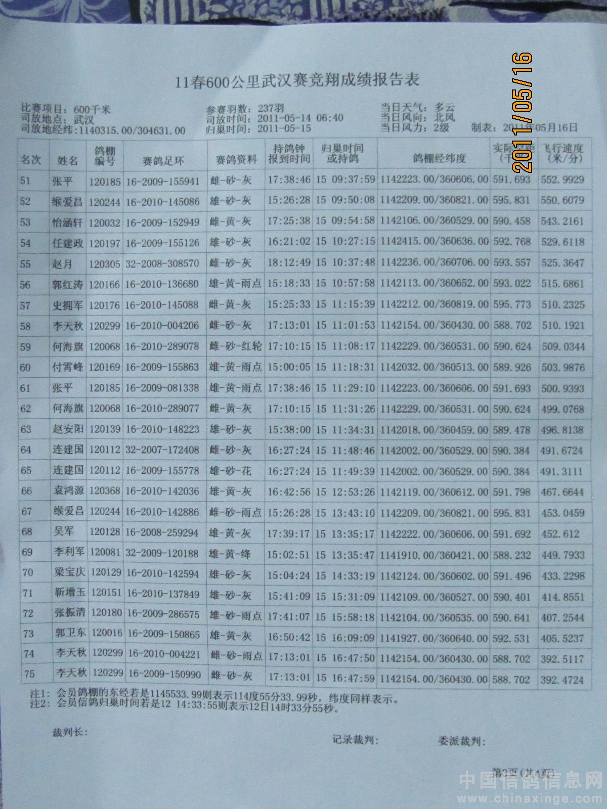 500公里大悟站前十名验鸽(1-2)