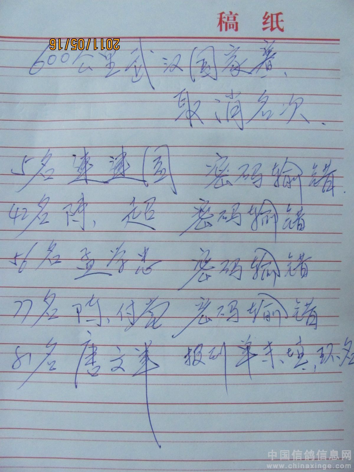500公里大悟站前十名验鸽(5-6)