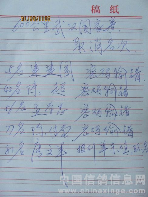 武汉国家赛成绩