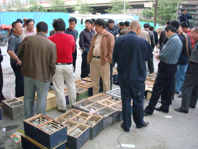 乌鲁木齐市水磨沟区信鸽协会2005年5月19日集鸽现场---排队交鸽的鸽友们